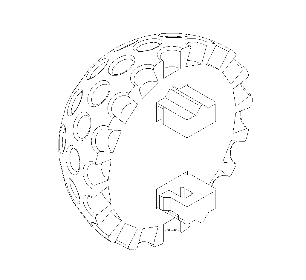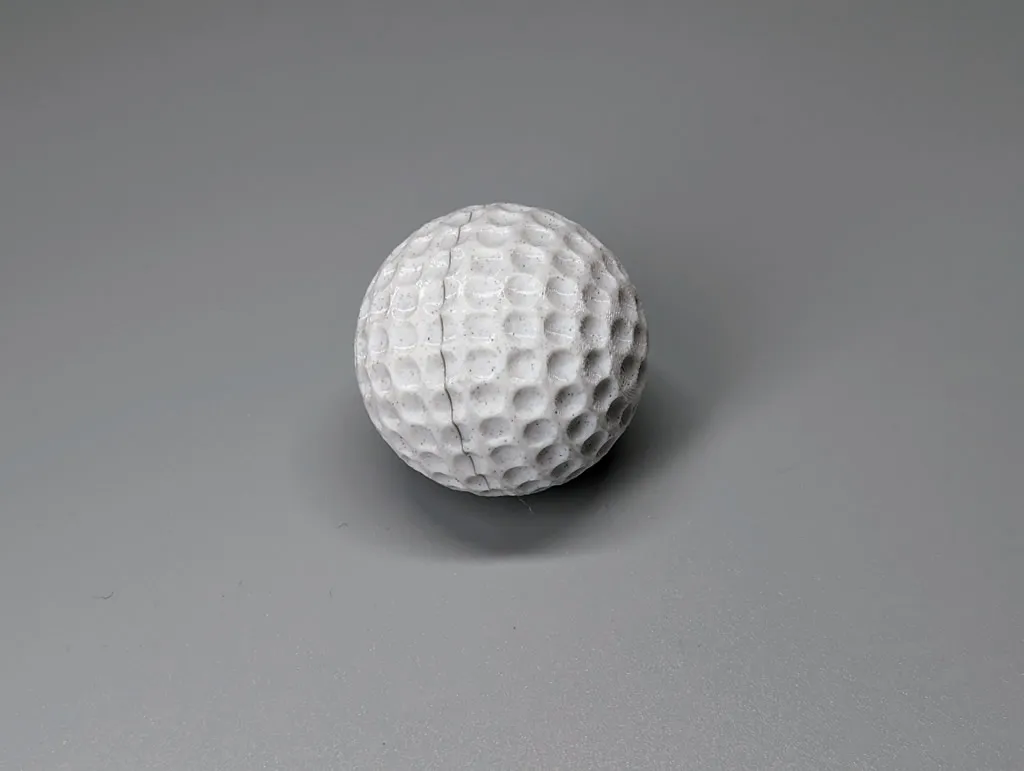 Golf ball sized (42.67mm) balls with various surface textures. Each ball is printed as two identical halves and are held together using two permanent locking pins. No adhesive or supports are needed.