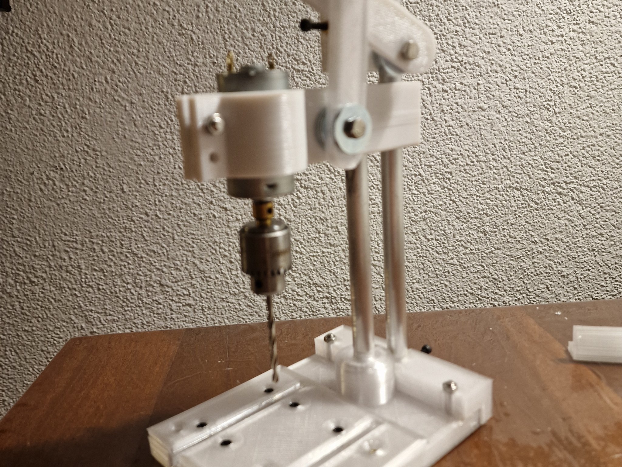 Mô hình máy khoan mini dễ dàng in bằng PLA hoặc PETG, bao gồm các bộ phận chi tiết và vật liệu cần thiết để lắp ráp.