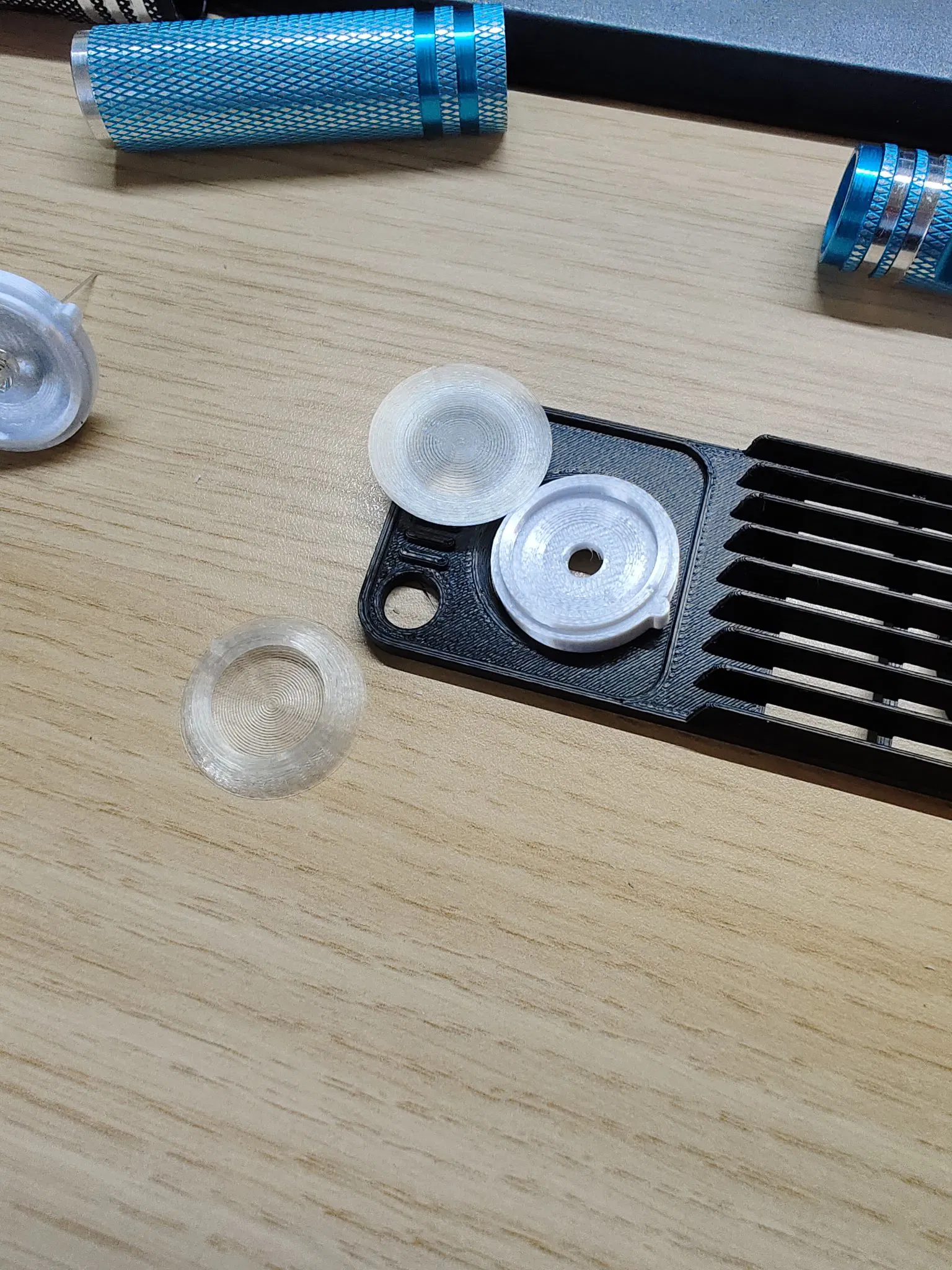 Chóa đèn mới + nắp chụp. Bạn in nắp chụp bằng nhựa trong. Mình dùng Nebula natural. Spectrum alu silk được dùng cho phần đèn.