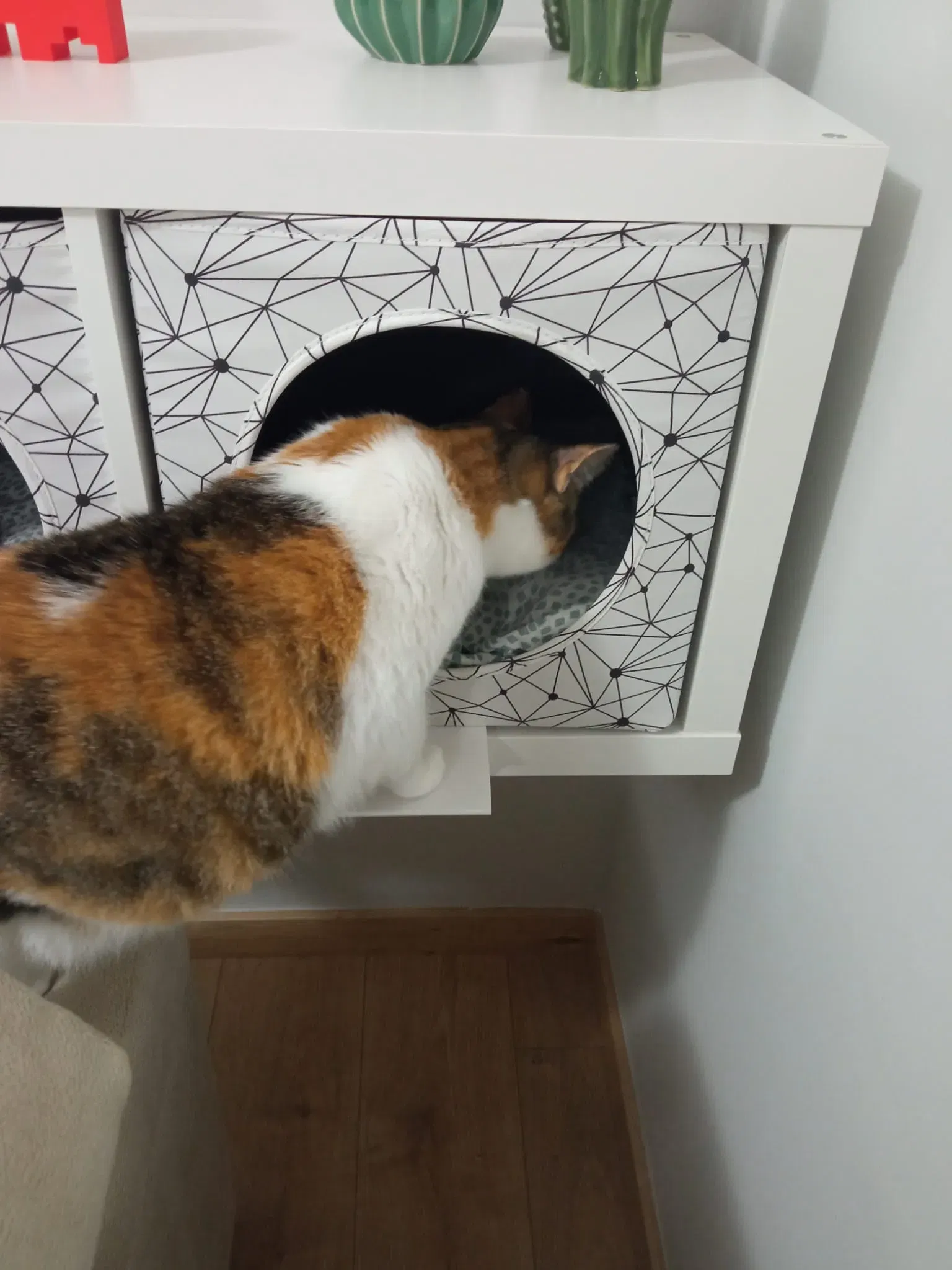 Nền tảng để mèo có thể truy cập vào nội thất của IKEA Kallax Lurvig.