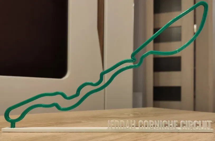 Mô hình đường đua Jeddah Corniche Circuit, Ả Rập Xê Út, phiên bản mùa giải F1 2022. Bao gồm đường đua và đế in riêng, có thể in nhiều màu để tăng tính thẩm mỹ. Kích thước đường đua 3x3 mm, đế 198x3x15 mm, với khe hở 0.1x0.1 mm giúp dễ dàng lắp ráp. Tác giả khuyến khích ủng hộ qua Ko-fi và sẵn lòng nhận yêu cầu mới.