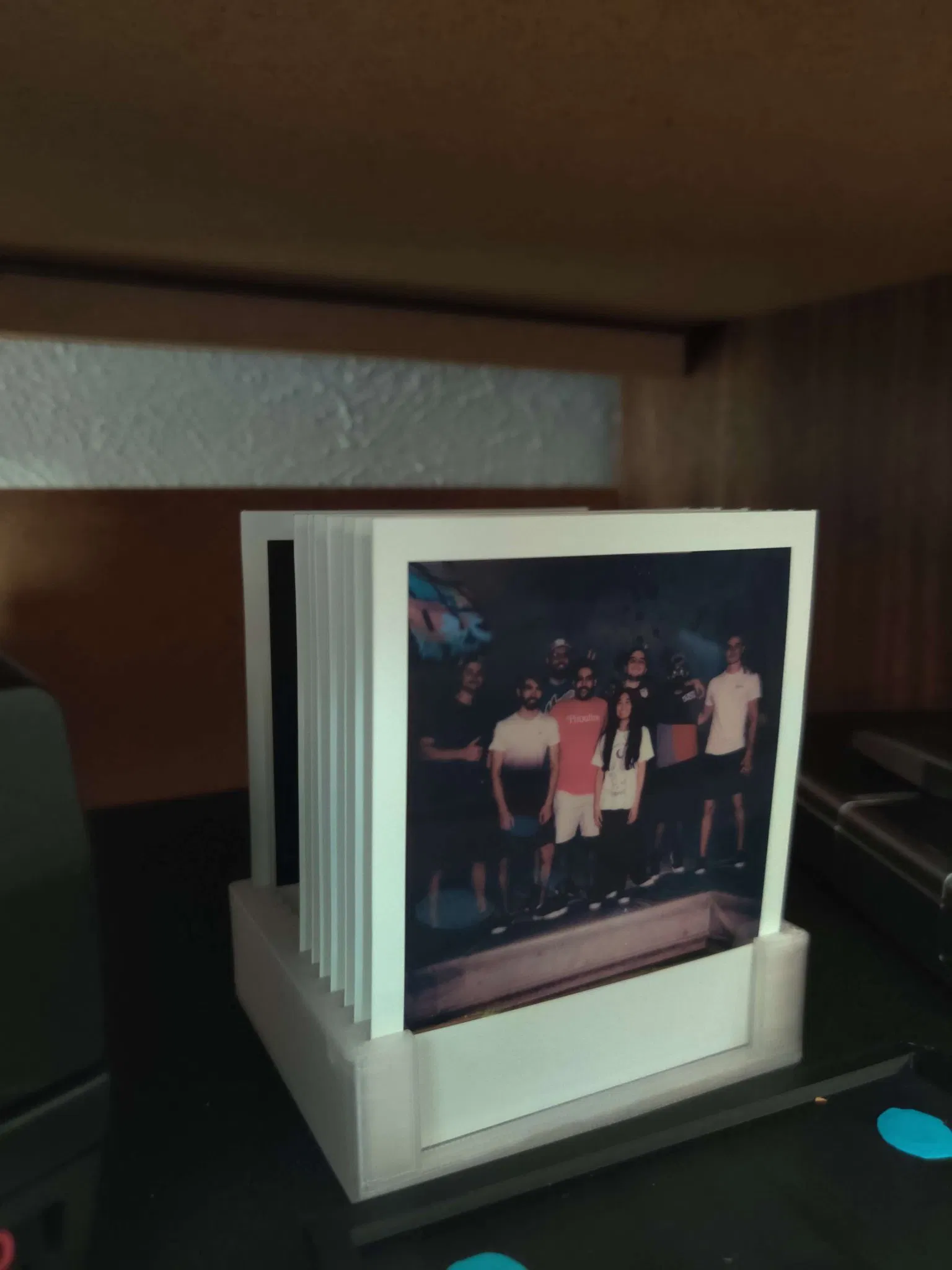Tôi chỉ muốn một phiên bản ngắn hơn để giảm thiểu việc sử dụng vật liệu. Cũng đã khoét phần trước và sau để tôi có thể nhìn thấy hình ảnh dễ dàng hơn trong khi vẫn giữ lại các bức tường bên để giữ hình ảnh đúng cách. Nên sẽ hoạt động với phim SX-70, 600 và i-type. Cho phép tôi trưng bày polaroid theo chiều dọc và dễ dàng lấy ra.