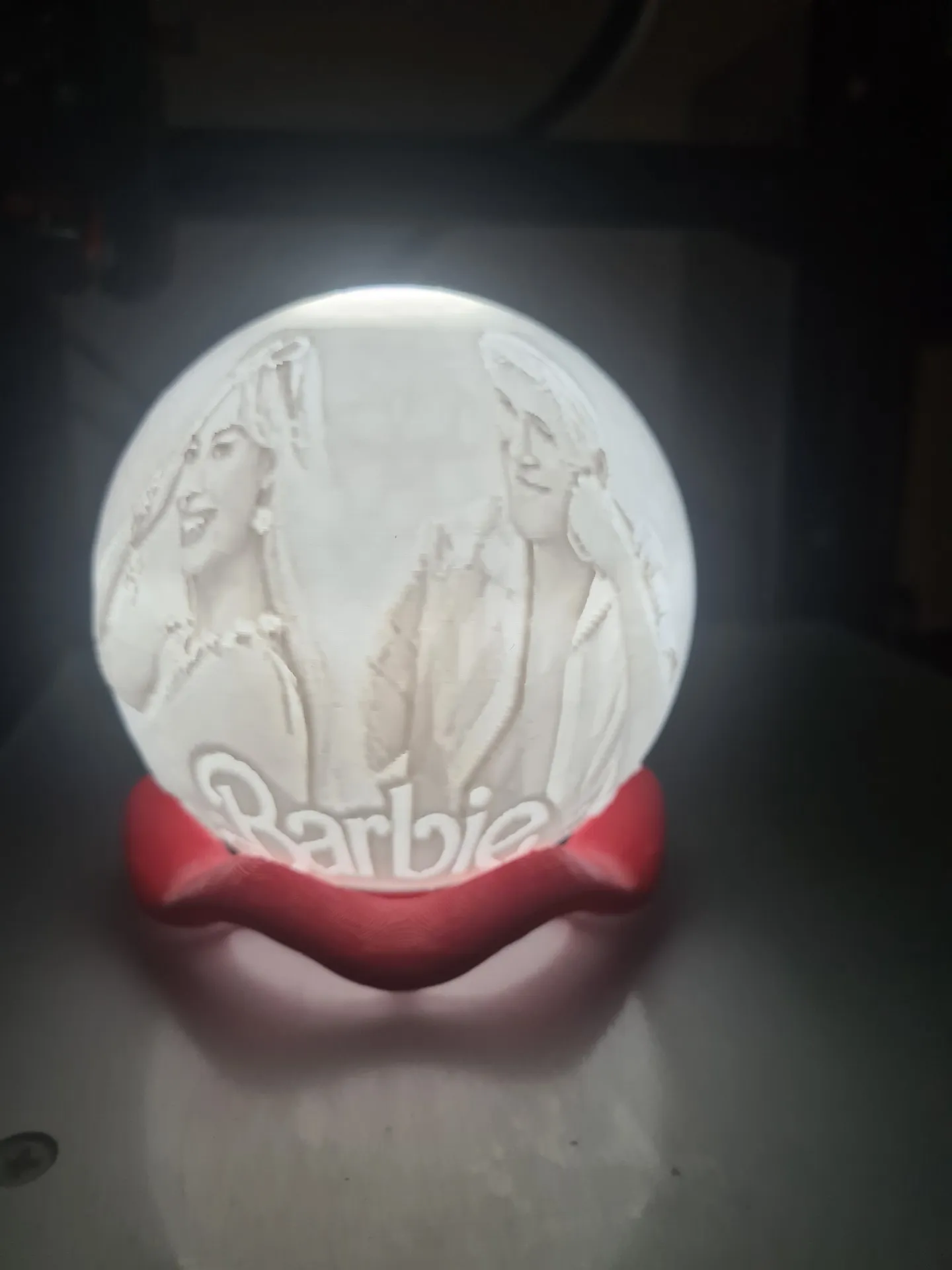 Mô hình 3D Barbie lấy cảm hứng từ bộ phim "Barbie la pelicula". Thích hợp cho in lithophane với các thông số kỹ thuật như chiều cao lớp 0.2mm, vòi phun 0.4mm, mật độ đổ đầy 100% cho hình cầu và 25%+ cho giá đỡ. Sử dụng sợi PLA màu trắng của Sunlu.