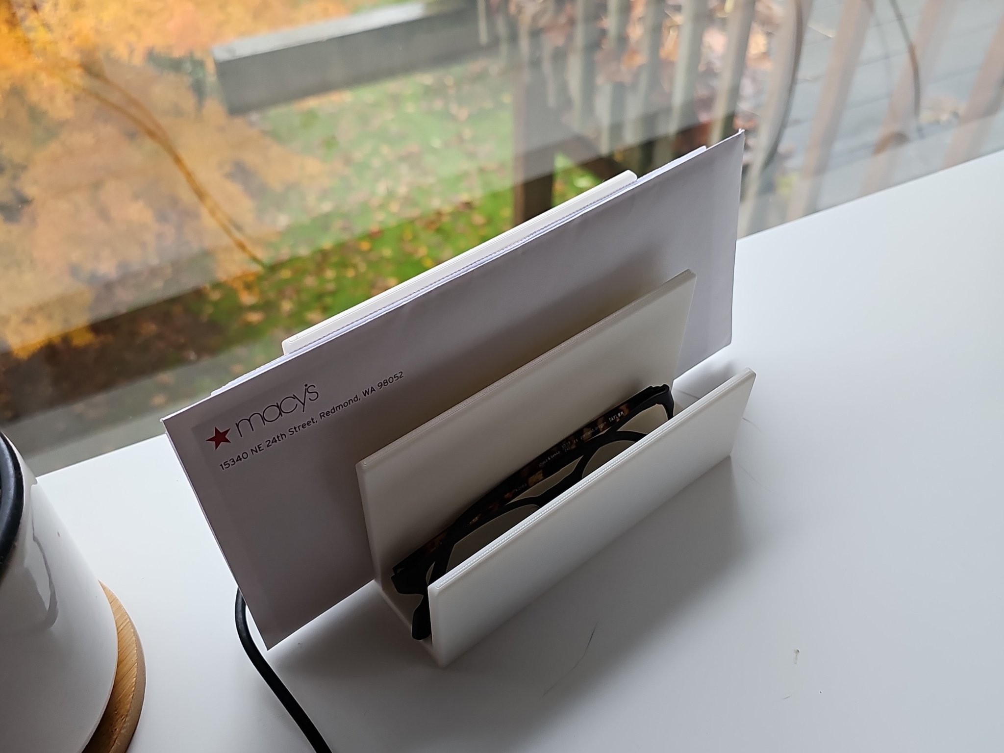 Simple 6x4 inch (base) letter holder. Typical print settings are fine. No supports or brim needed.