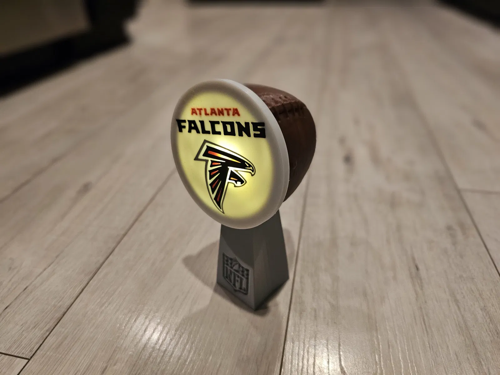 I created this football themed frame to display your favorite American football team. Either lit up or not. I designed the team logos a little loose there would be some flixibility depending on your print settings. Shrink or enlarge as necessary to achieve the fit you'd like.