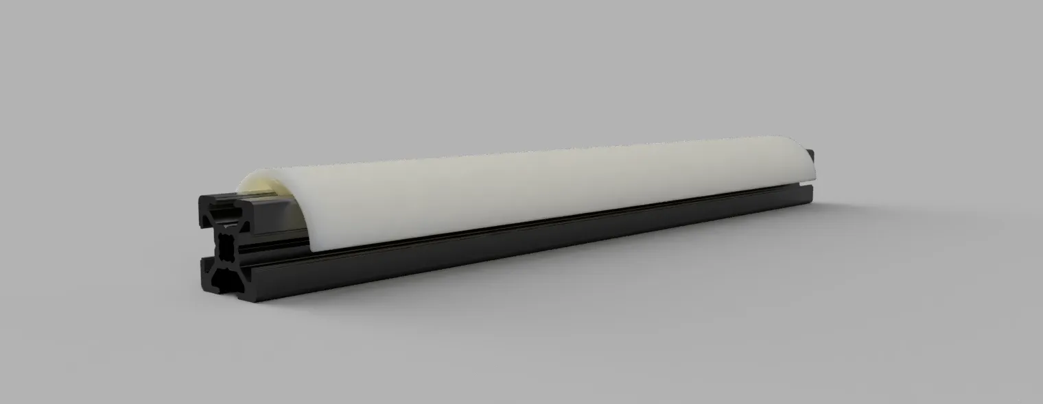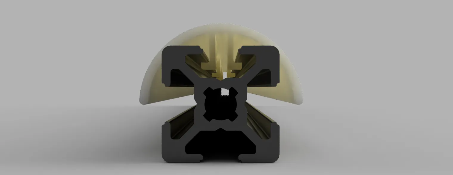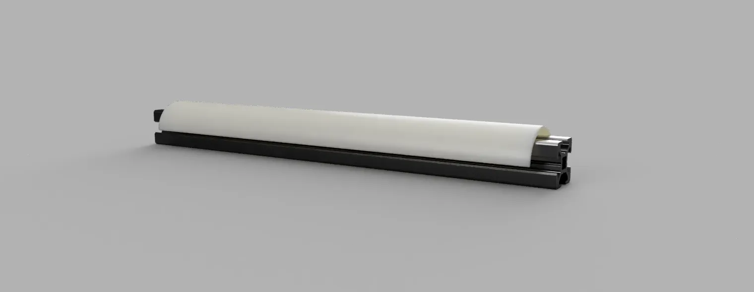Vì cáp của Sprite Extruder khá dài và nặng, tui quyết định đi dây nó qua thanh trên của máy in. Nhưng mà có nguy cơ bị mòn nhiều (và có thể bị chạm dây), nên thay vì luồn qua thanh nhôm, tui đã thiết kế cái "cái trượt" này.