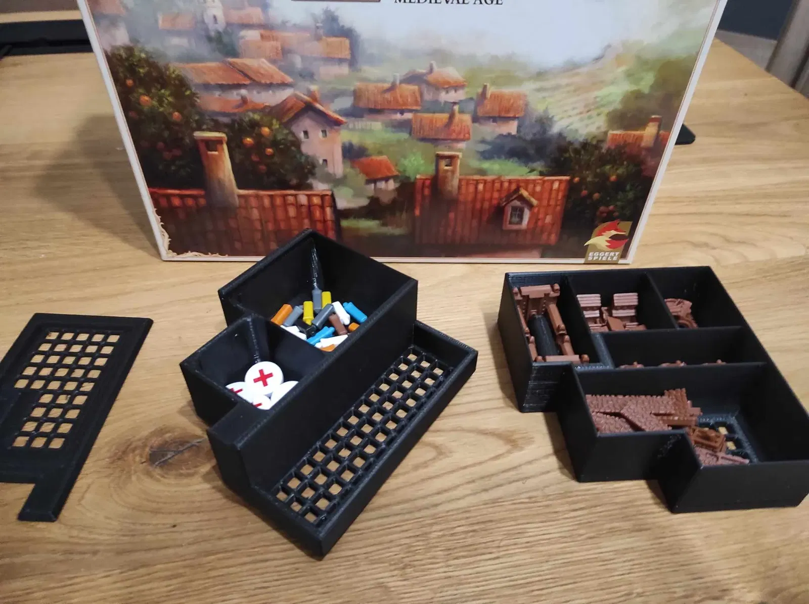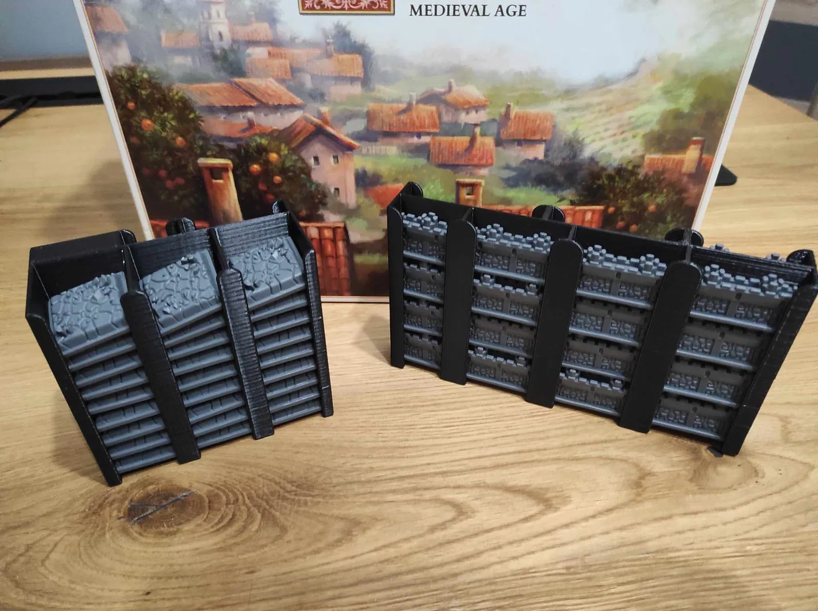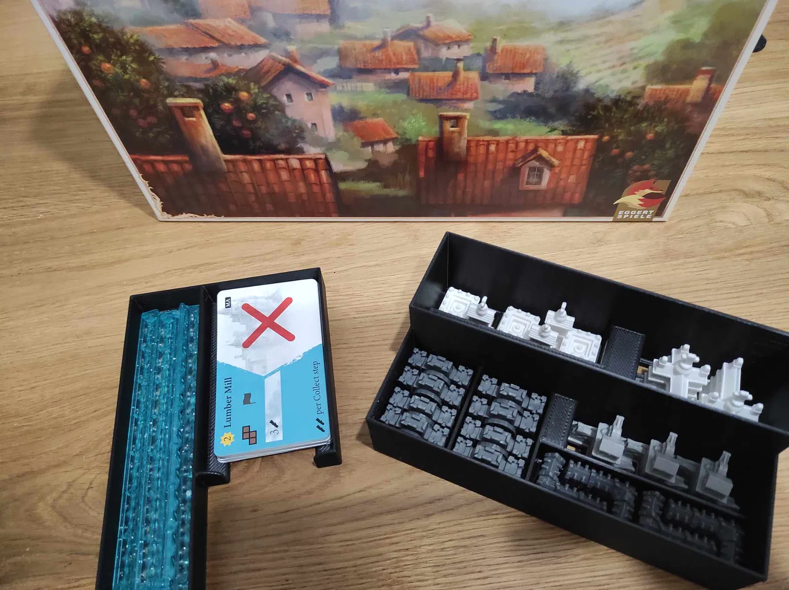 - Tôi muốn giảm thiểu không gian bàn chơi cần thiết, đó là lý do tôi chọn các khay dựng đứng, nhưng chỉ có vài khay dựng đứng vì tôi nhận ra việc xếp mọi thứ trở lại hộp có thể là một thử thách và một câu đố nếu tôi quyết định làm mọi thứ dựng đứng hoàn toàn.