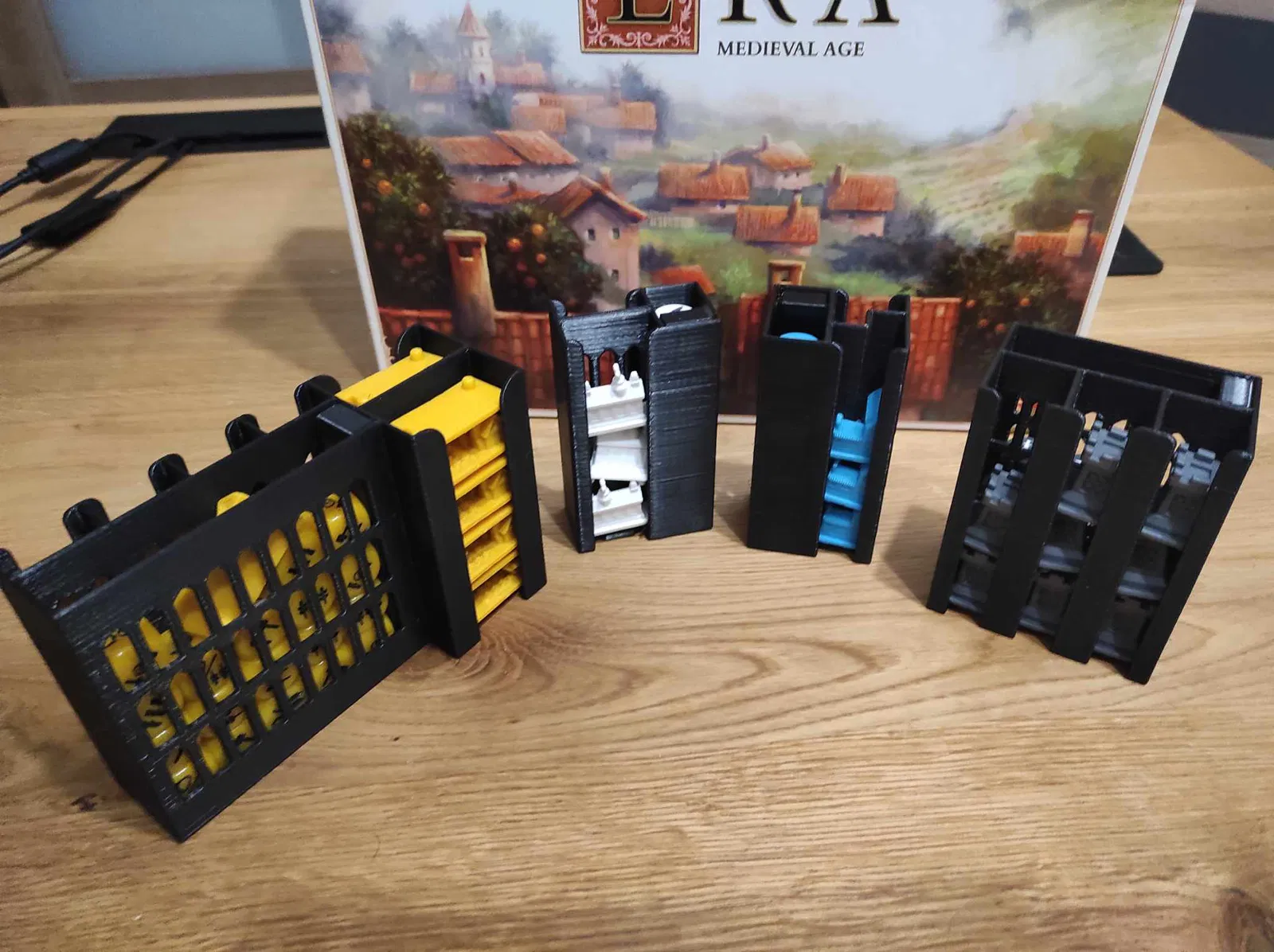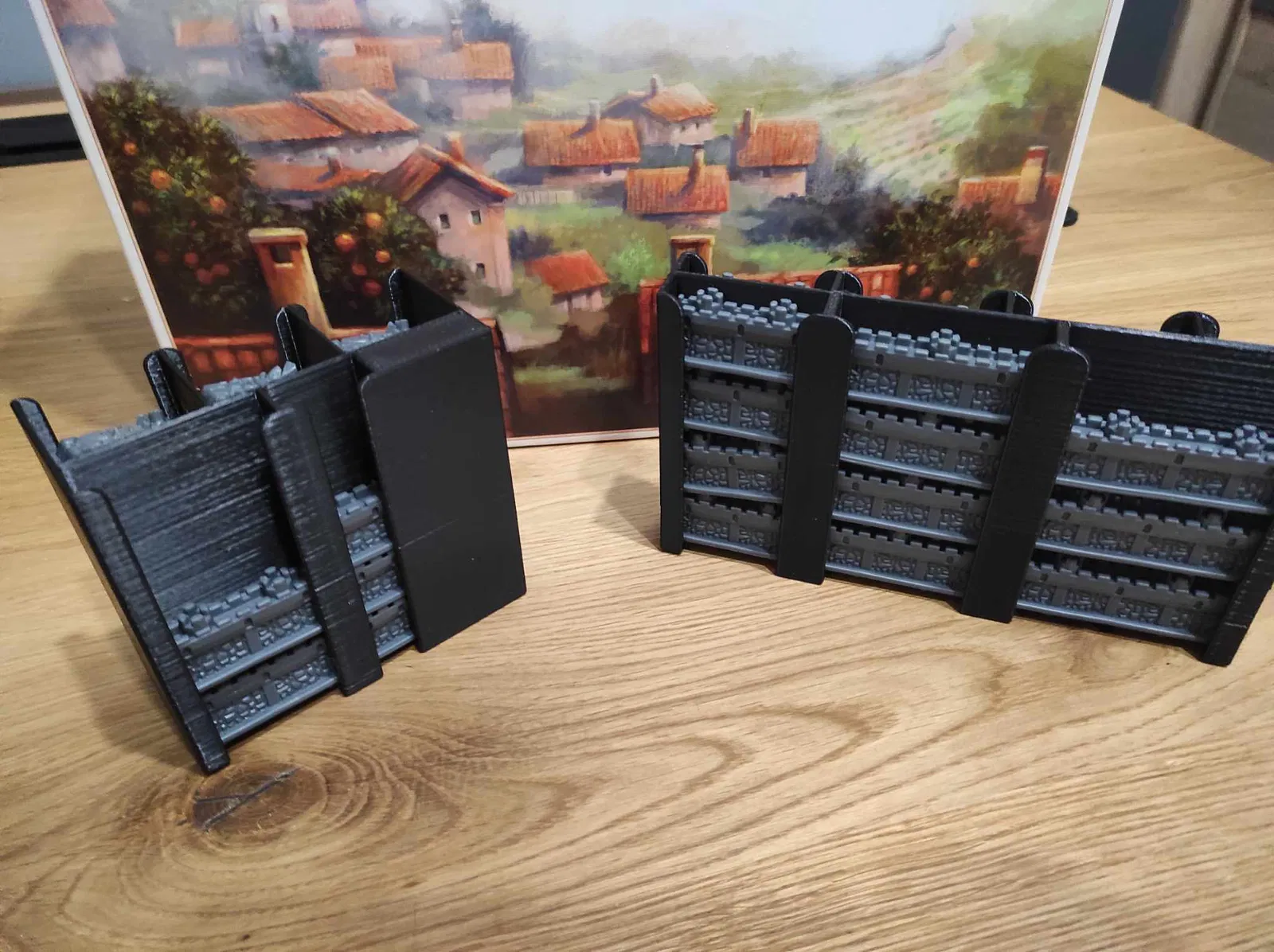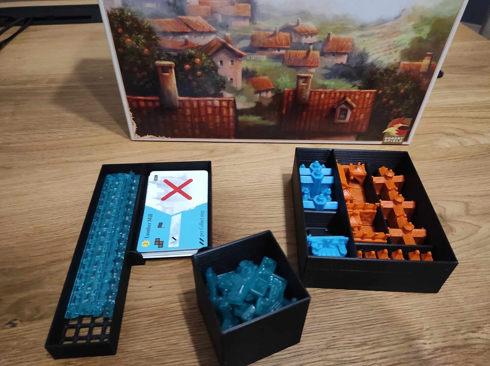 - Tôi muốn giảm thiểu không gian bàn chơi cần thiết, đó là lý do tôi chọn các khay dựng đứng, nhưng chỉ có vài khay dựng đứng vì tôi nhận ra việc xếp mọi thứ trở lại hộp có thể là một thử thách và một câu đố nếu tôi quyết định làm mọi thứ dựng đứng hoàn toàn.
