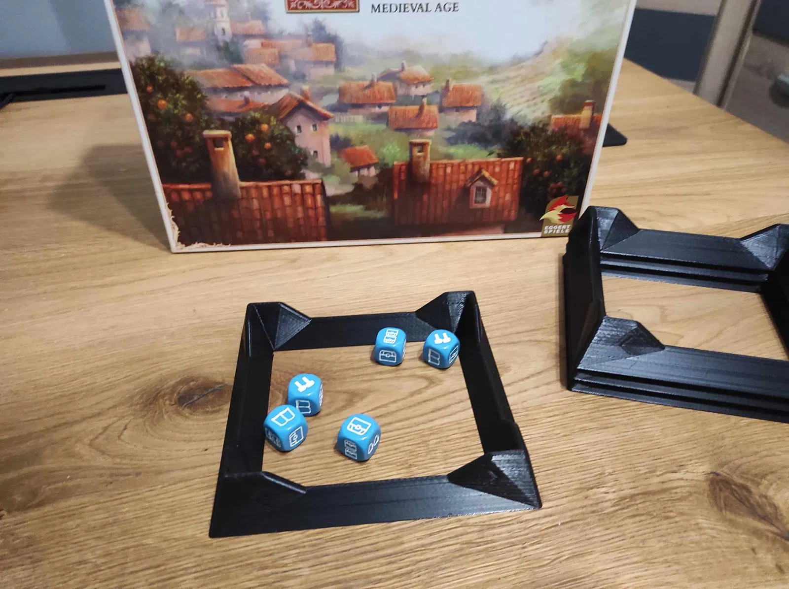 - Khay xúc xắc kiểu lâu đài - trong hộp chúng hoạt động như một miếng đệm, trong khi chơi bạn có thể sử dụng chúng như một khay xúc xắc.