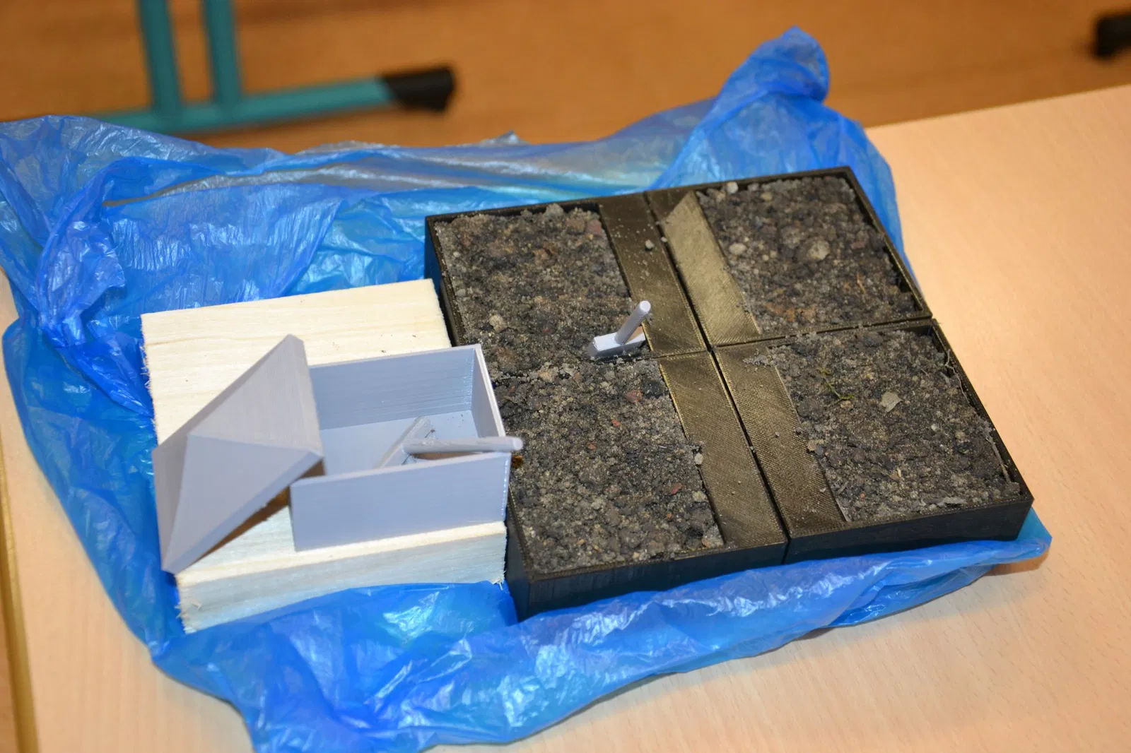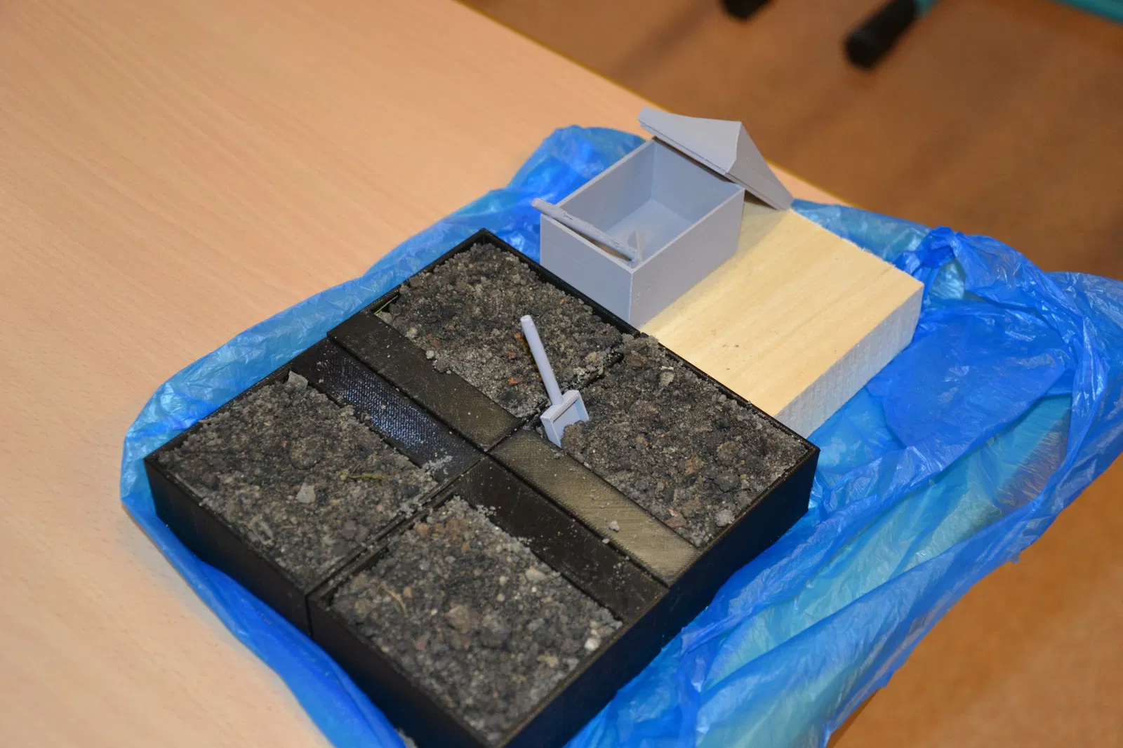 Chòi làm vườn này là một bộ phận của khu vườn 4 khu vực. Nó có thể mở ra và bên trong có chỗ để đựng dụng cụ làm vườn như xẻng và cào.