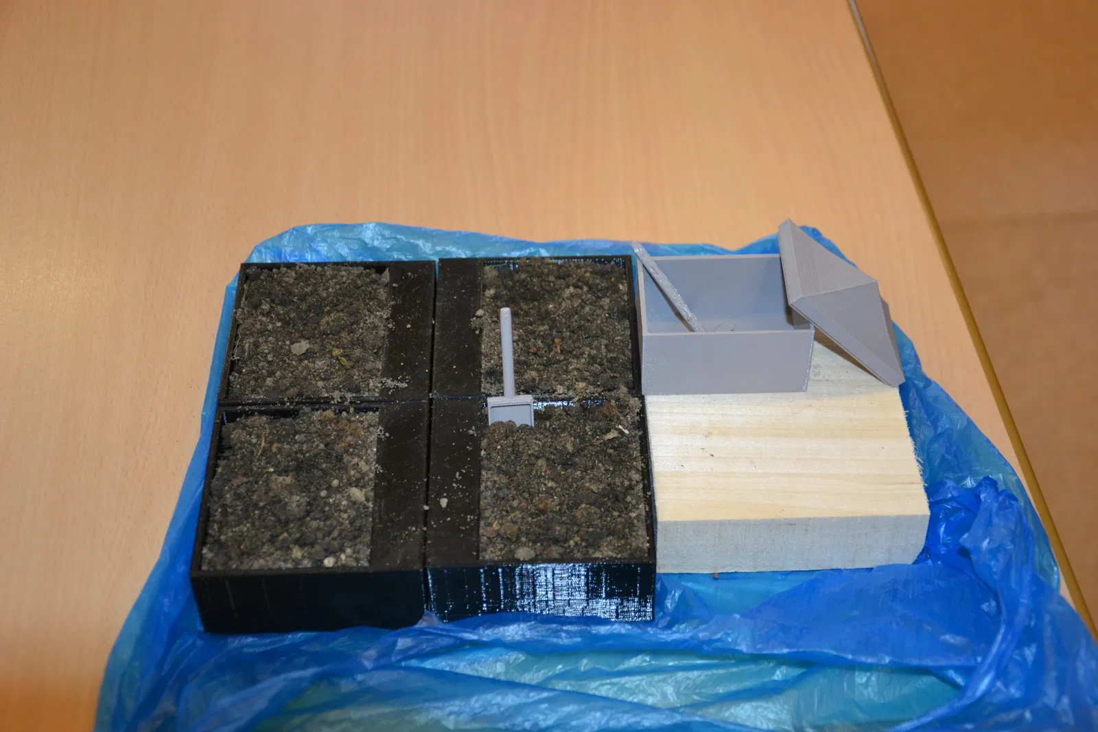 Vườn nhà mình có 4 khu vực lận đó. Kèm theo là cái chòi, cái chòi này có thể mở ra được và bên trong là chỗ để đựng dụng cụ làm vườn (xẻng và cào) nha.