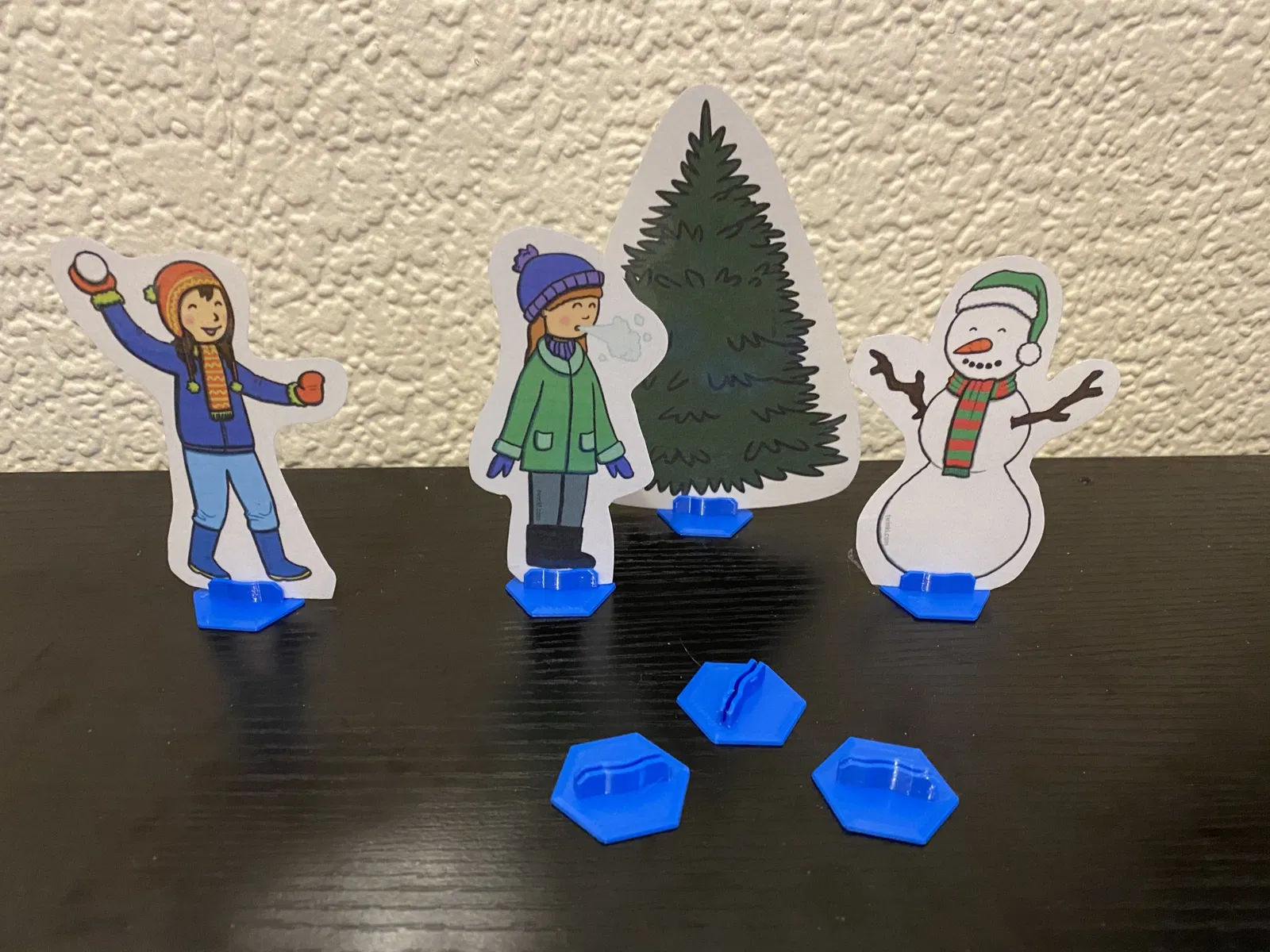 Cái đế nhỏ và đơn giản này đi kèm với nhiều nhân vật in ra, dùng để kể chuyện giáo dục hoặc chơi game nhập vai.