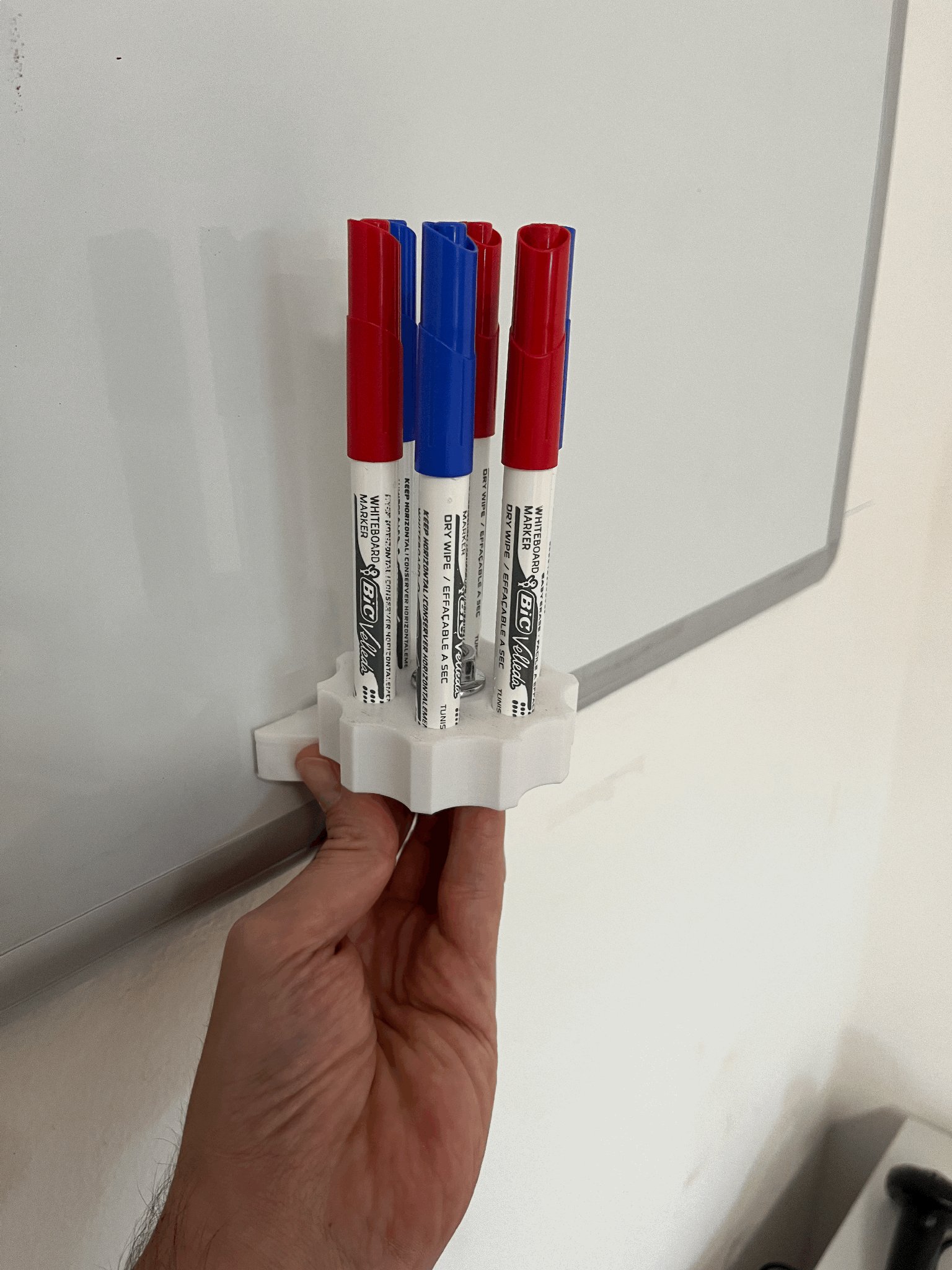 Cái khay đựng bút này có đế xoay nha, có chỗ gắn nam châm để treo lên tường kim loại, dễ dàng lấy bút ra xài.