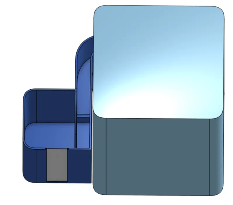 Màn hình trong suốt nên in bằng nhựa PC hoặc PETG trong suốt, hoặc có thể dùng một tấm mica dày 1.5 đến 2mm.