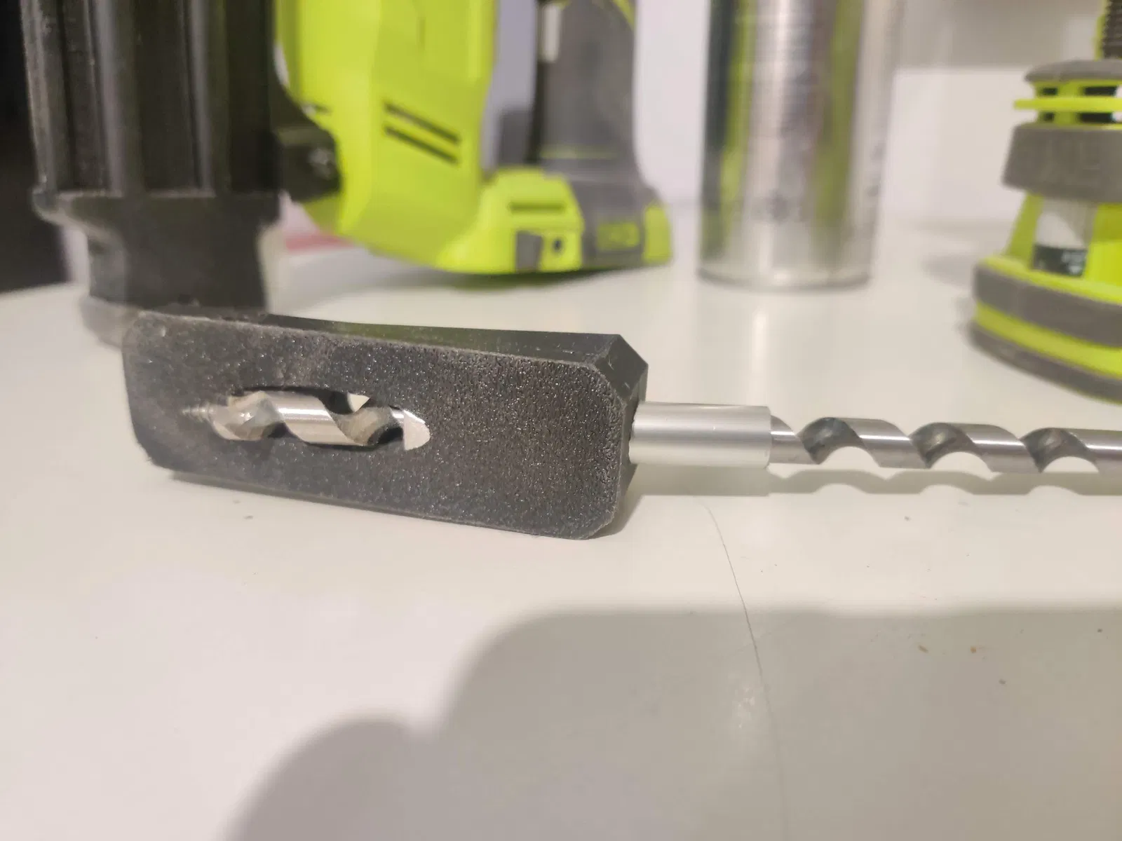 Một bộ gá túi đơn giản cho mũi khoan 8 hoặc 10 mm. Đối với mũi 10mm, bạn có thể dùng bộ gá trực tiếp, nhưng sau một thời gian khoan mũi khoan sẽ làm hỏng nó, hoặc bạn có thể dùng kèm một ống kim loại 10x1mm (nhôm, đồng, thép) để hỗ trợ.