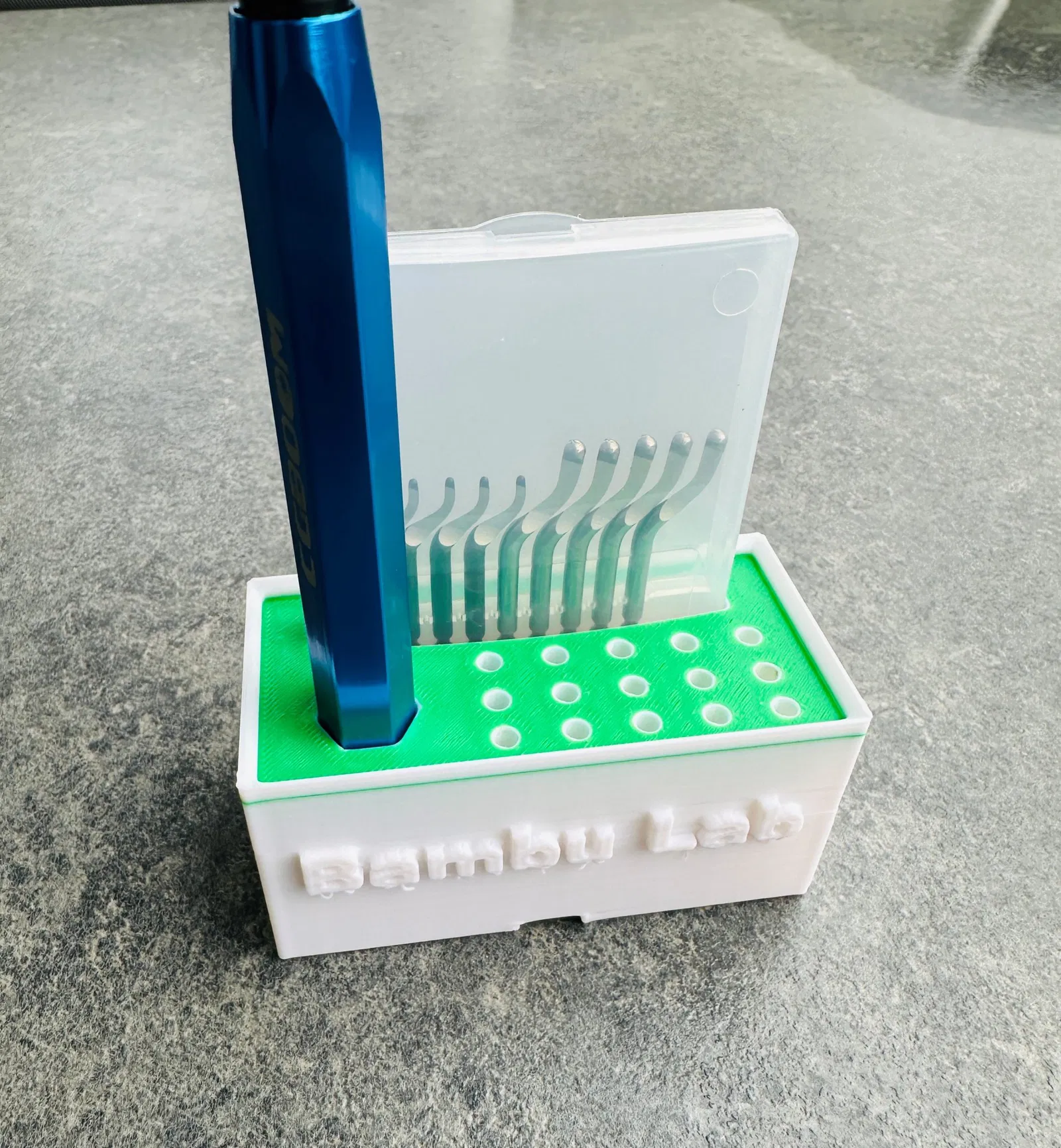 Hộp đựng dao bào bằng PLA giúp bạn sắp xếp gọn gàng các dụng cụ gọt cạnh, rất tiện lợi cho việc in ấn và sử dụng.