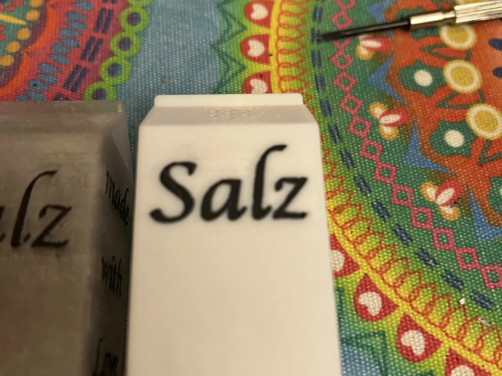 Một hũ đựng muối nhỏ xinh xắn, được thiết kế độc đáo theo hình dáng hộp sữa quen thuộc. Bạn có thể in mà không cần support, và có nhiều lựa chọn về vật liệu in nắp. Cách trang trí chữ cũng rất đa dạng, nhưng dùng SUGRU sẽ cho kết quả tốt nhất.