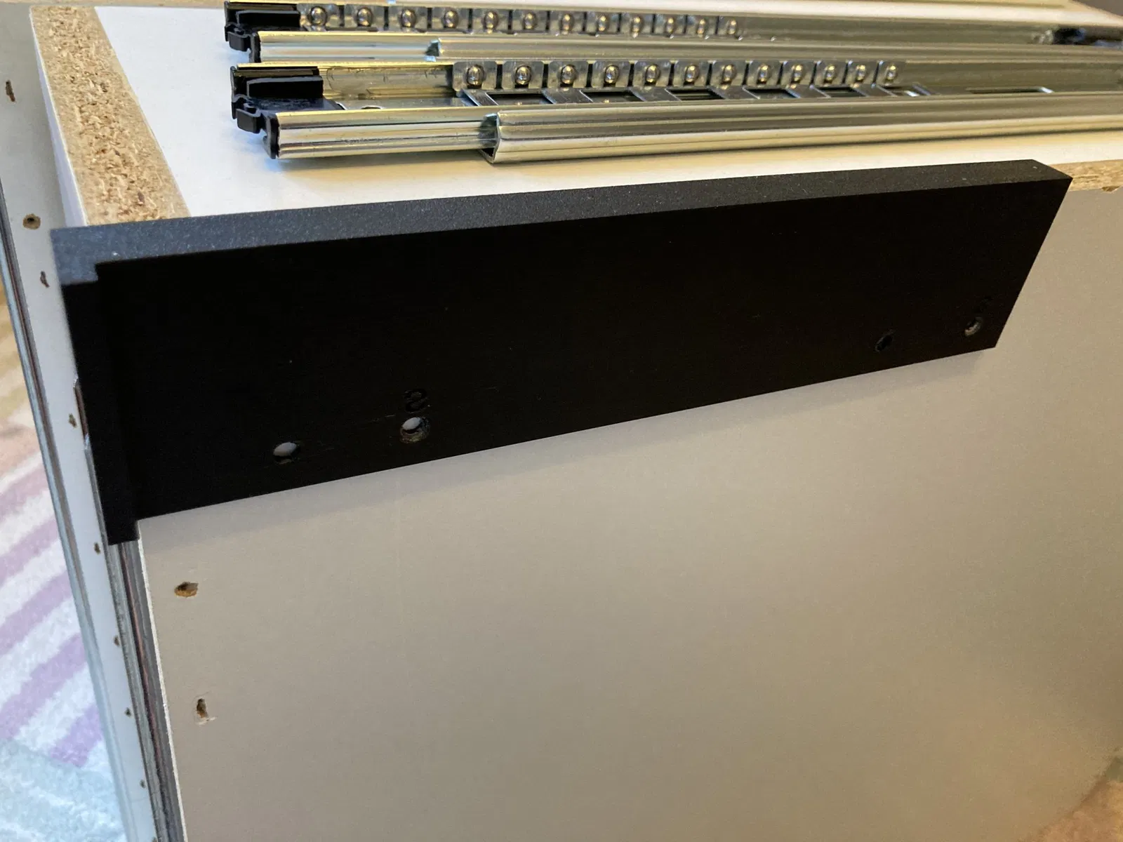 Các lỗ bổ sung khác có thể được khoan sau khi ray trượt đã được cố định vào ngăn kéo/thân tủ.