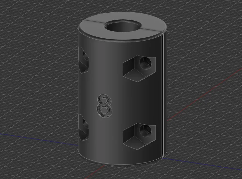 Chặn mũi khoan 8mm, dùng cho các công việc khoan đòi hỏi độ chính xác. Sản phẩm này cần ốc vít và đai ốc M3 để lắp ráp. Thiết kế bởi Fusion 360, phù hợp cho vật liệu PLA.