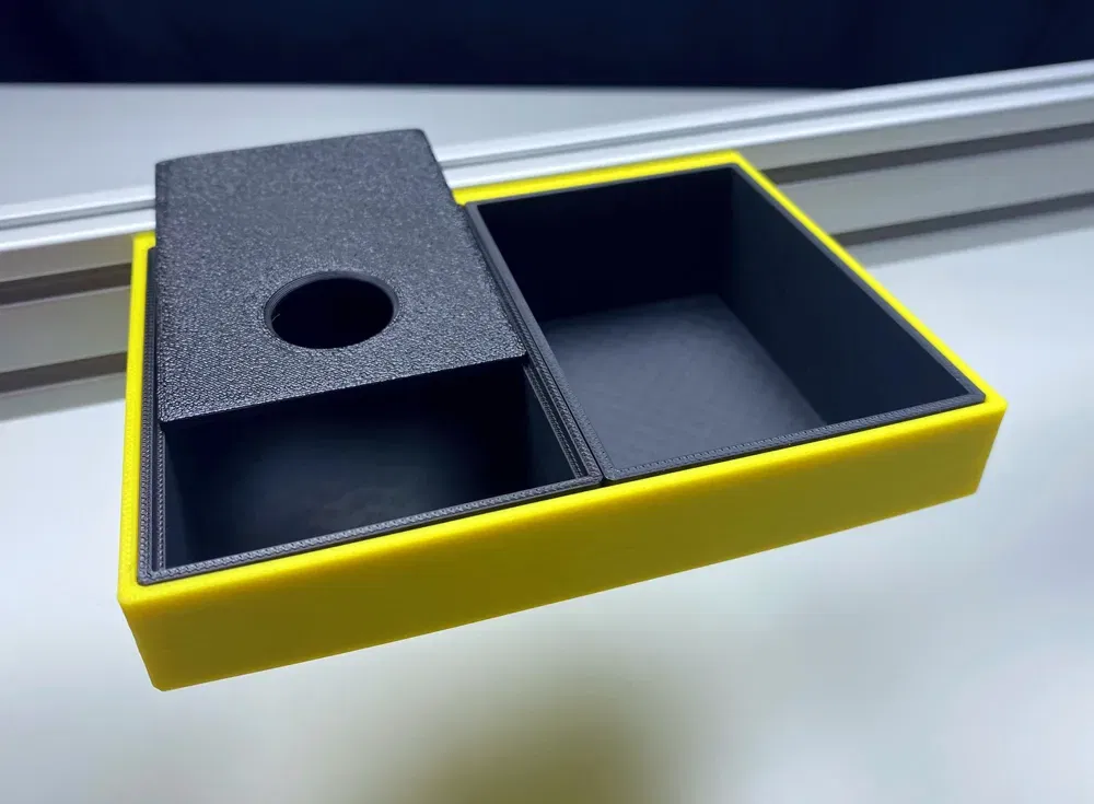 Chiếc hộp nhỏ xinh MT-SYSTEM Inlay S có nắp, kích thước 60x85mm, dùng để cất giữ ốc vít, bu lông, đai ốc và các đồ vật nhỏ khác, tránh bụi bẩn. Có thể sử dụng chung với khay MT-SYSTEM cỡ M/L. In bằng PLA hoặc PETG với lớp cao 0.2mm. Lắp đặt bằng ốc M4, đai ốc trượt M4 lên thanh nhôm 20x40mm.