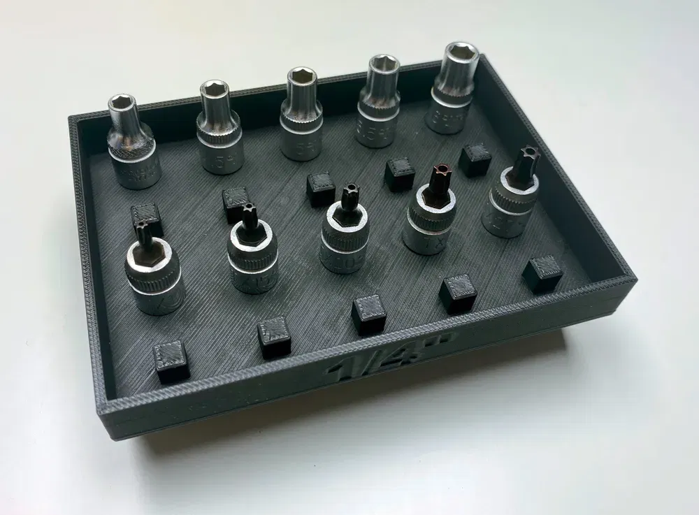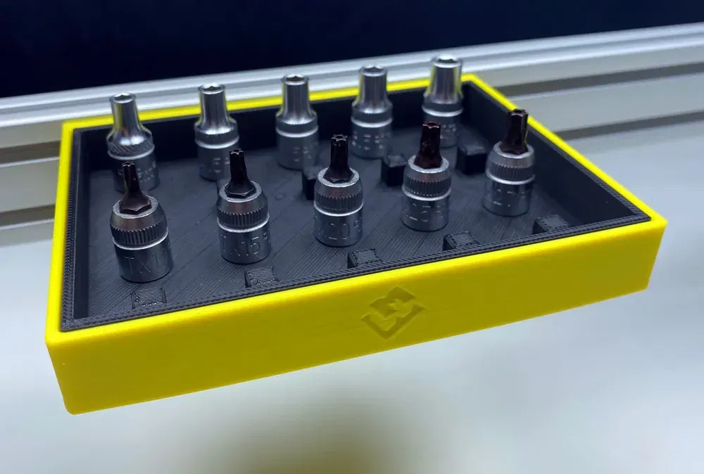 Cái inlay MT-SYSTEM cỡ M (120x85mm) này dùng để giữ các loại đai ốc, có thể dùng với khay MT-SYSTEM cỡ M/L. In bằng PLA/PETG, độ cao lớp 0.2mm. Khám phá toàn bộ hệ thống MT-SYSTEM gồm khay, miếng chèn, móc, giá đỡ và nhiều hơn nữa để lắp đặt xưởng cá nhân.