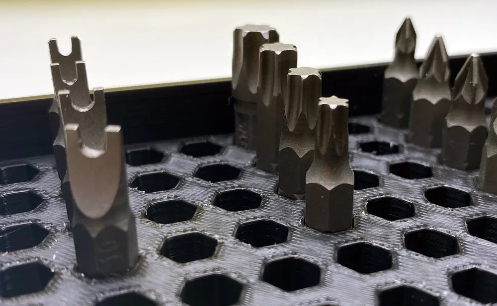 Thiết kế của ngăn đựng mũi khoan là NÂNG CẤP, nghĩa là 4 hàng cuối cùng cao hơn 1mm so với hàng trước đó. Vì vậy, các mũi khoan ở vị trí sau cùng sẽ cao hơn các mũi khoan ở hàng đầu tiên để người dùng có cái nhìn tổng quan tốt hơn về dụng cụ của mình.