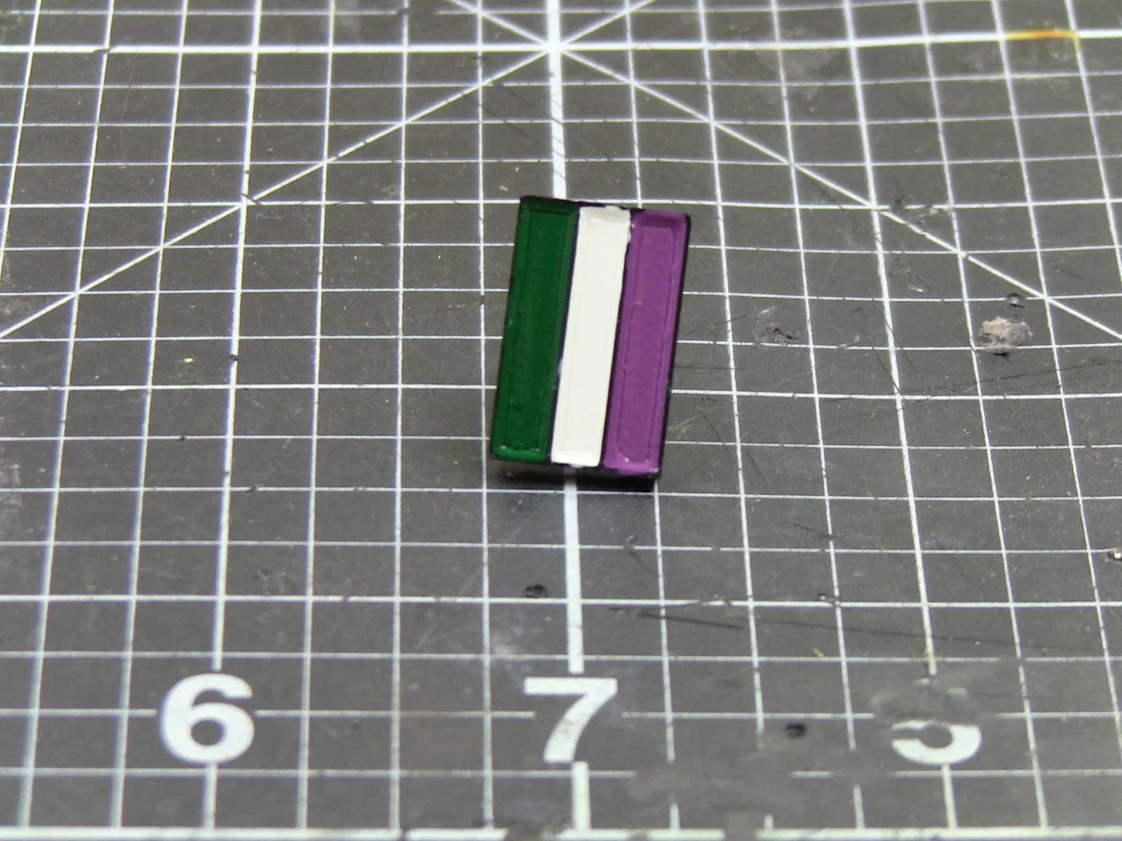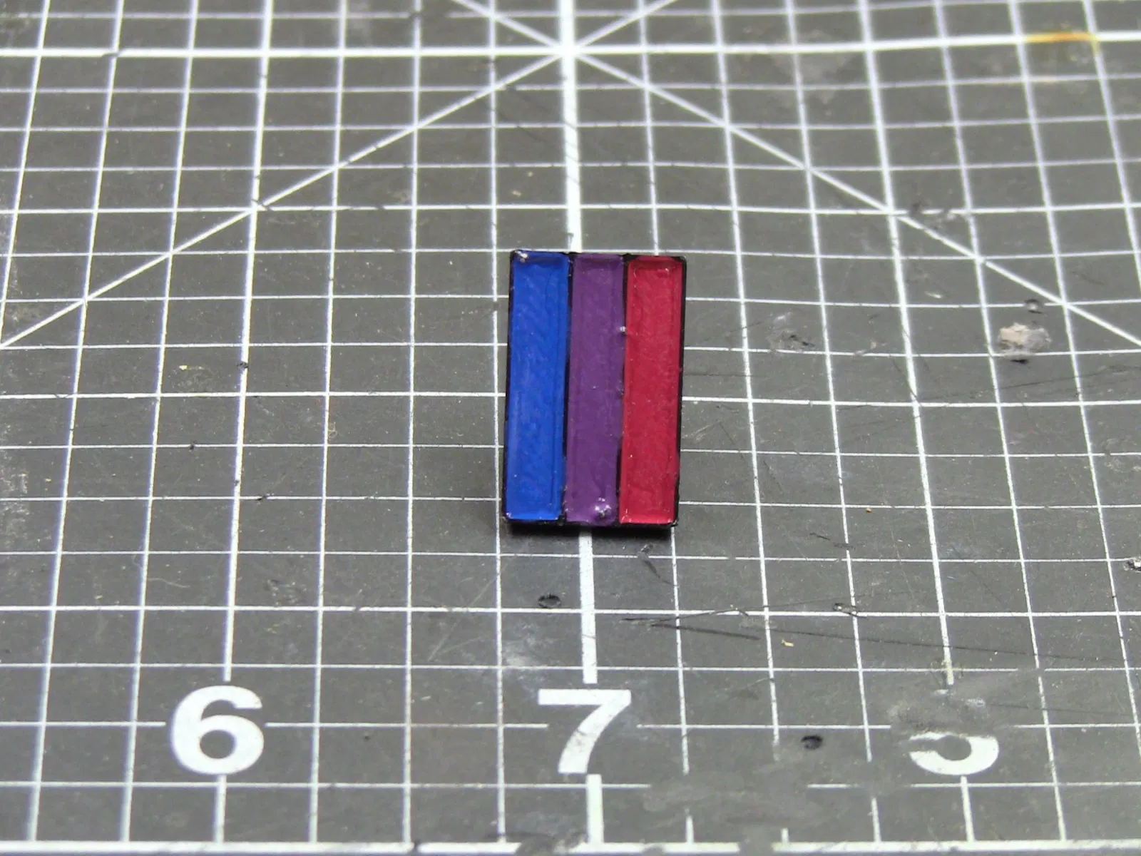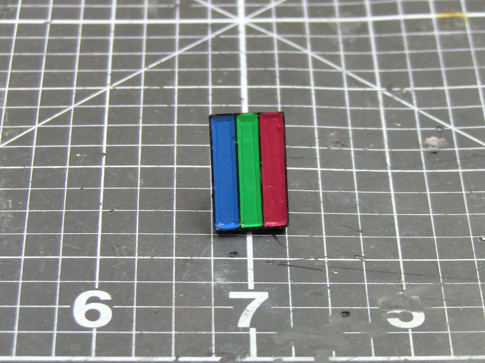 Ghim cài áo 3 sọc cầu vồng. Mô hình này in bằng nhựa ABS, với độ dày lớp 0.1mm và độ đặc ruột 100%. Sau khi in, bạn có thể sơn màu bằng cọ nhỏ và phủ lớp bảo vệ để hoàn thiện sản phẩm.
