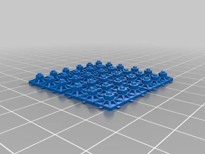 Bộ đai ốc, bu lông, vòng đệm (NBW) là chi tiết thường thấy trên các mô hình kiến trúc khổ hẹp, cầu cộ và các công trình hạ tầng khác. Bản in này được thực hiện trên máy Prusa i3 MK3 với cài đặt in 15% infill, không cần raft hay supports. Nên giảm tốc độ in để tránh bị rối dây nhựa.