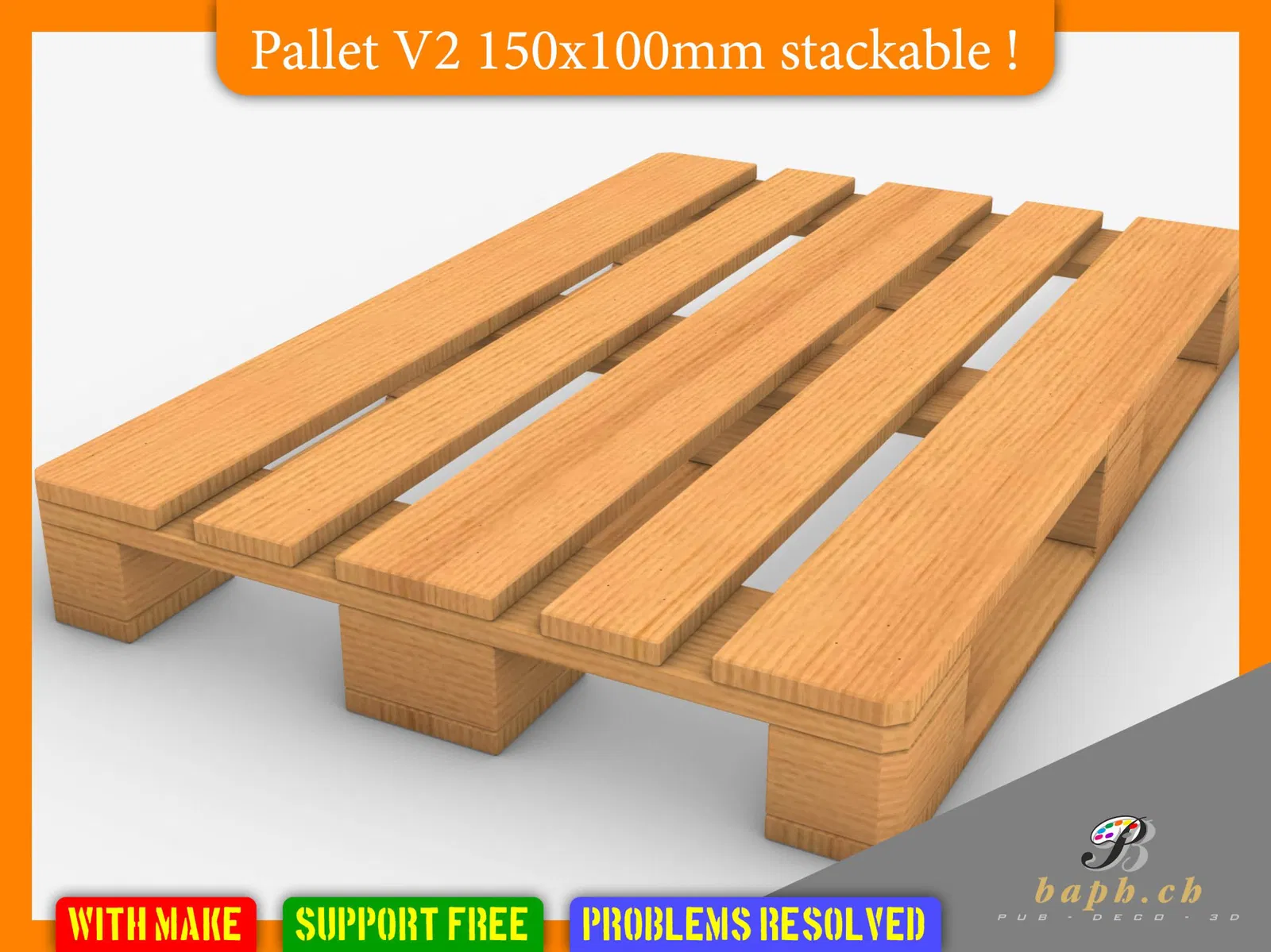 Pallet xinh xắn 150x100mm in luôn không cần support ở góc 45 độ để có kết quả đẹp nhất. Có thể xếp chồng (tùy bạn chọn) với hoặc của tôi.