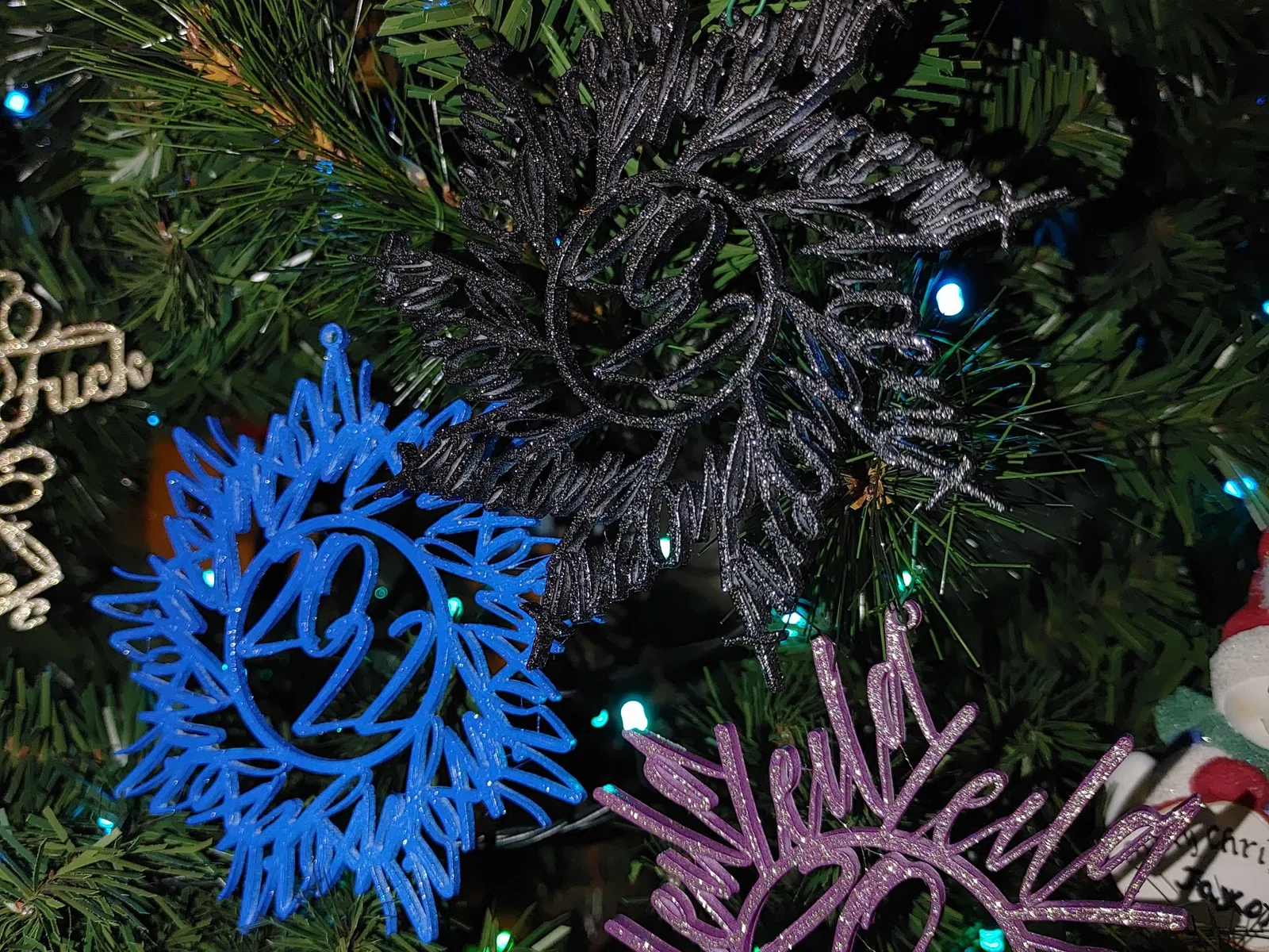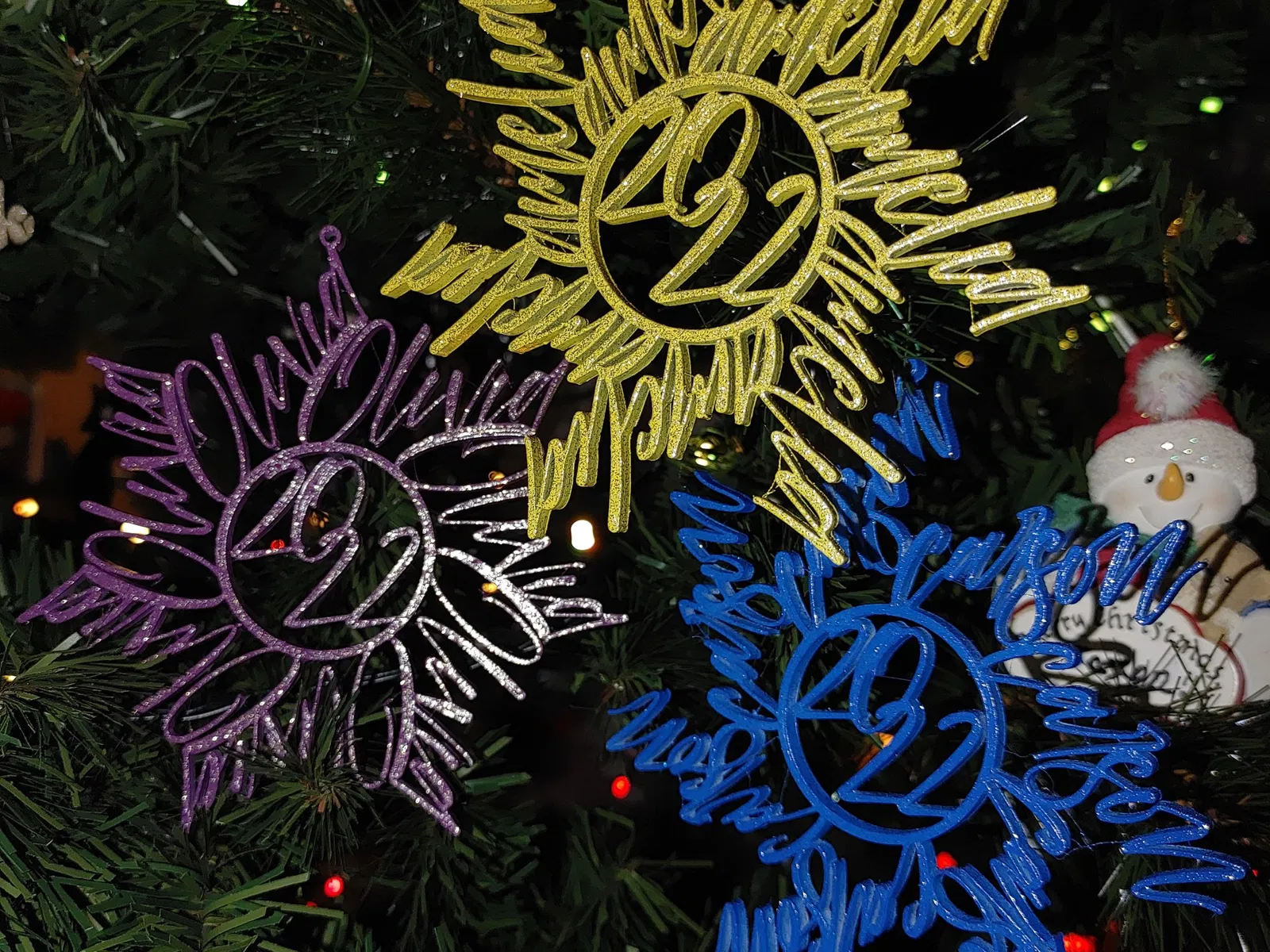 Tôi đã in những bông tuyết "f*ckflake" này được mấy năm rồi, nhưng mà thấy chán chán nên quyết định tự thiết kế bằng OpenSCAD thay vì xài Inkscape. Thấy làm với một chữ ngon lành, nên tôi làm thêm mấy chữ nữa… mỗi đứa cháu, đứa con của tôi đều có một cái. Bạn có thể xài bất kỳ font nào mà OpenSCAD hỗ trợ nha (nhưng mà có thể phải cài lại nếu bạn xài Windows mà nó chỉ cài cho tài khoản của bạn thay vì “tất cả người dùng”). Nếu bạn không muốn cài về máy và chấp nhận font chữ giới hạn trên http://fonts.google.com thì có thể xài cái customizer online trên Thingiverse nè (https://www.thingiverse.com/thing:5719286).