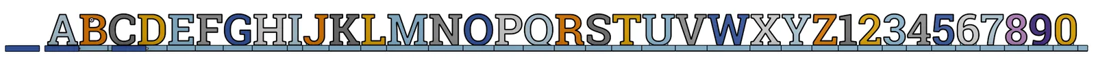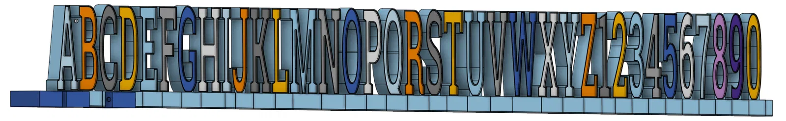 In các hộp đựng bằng sợi nhựa (filament) tùy thích, sau đó in phần thấu kính (lens) bằng màu trắng. Dán dải LED vào bên trong các mô hình. Đặt chúng nằm ngửa để in, bạn có thể cần giá đỡ (supports) nếu chưa căn chỉnh chế độ in cầu nối (bridging) tốt. Bạn có thể thay đổi tỷ lệ chữ cái theo hướng X và Y, nhưng giữ nguyên Z để dải LED vừa vặn. Sau đó, bạn có thể thay đổi tỷ lệ các đế và nắp cuối cho phù hợp. Sau khi in xong các chữ cái/số, hãy xếp chúng lại và đo tổng chiều dài. Sử dụng số đo đó cho các đế trong phần mềm cắt lớp (slicer). Bạn có thể kéo giãn Đế Giữa theo trục X bằng phần mềm cắt lớp. Sau đó dùng keo và chốt trụ để kết nối chúng. Các nắp cuối đều có chiều dài bên trong là 100mm.