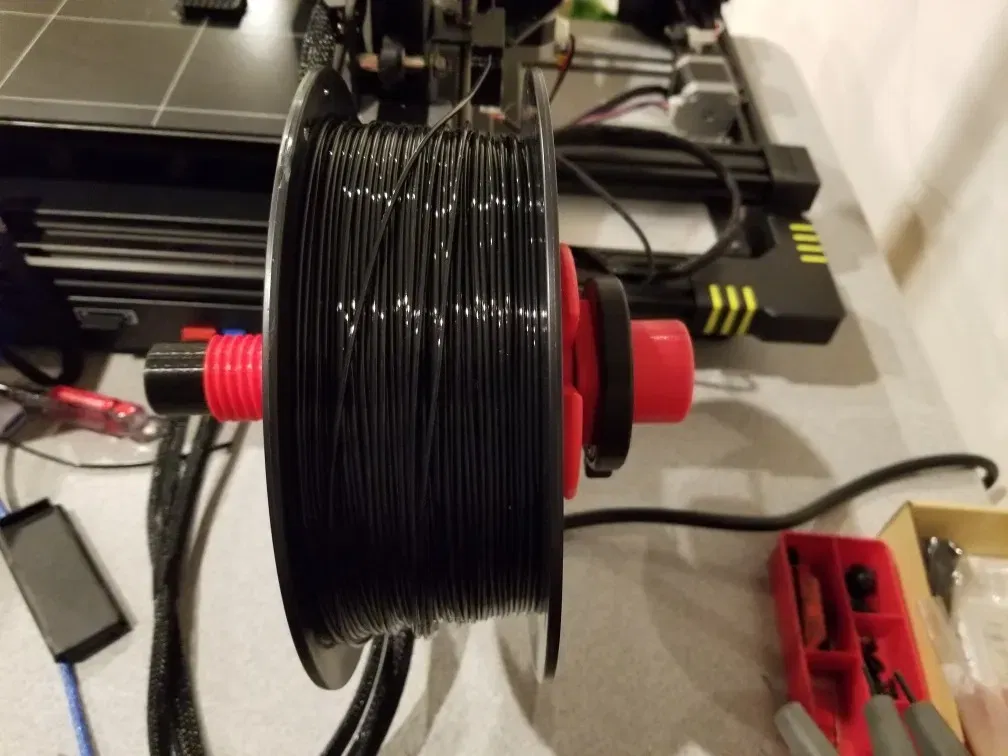 Tui thích cái ý tưởng của cái adapter (https://www.thingiverse.com/thing:3297987) với lại cái chỗ để dây tóc (filament holder) (https://www.thingiverse.com/thing:3114139), mà tui thấy cái đế của bản gốc hơi bị lỏng so với ý tui muốn. Nó vẫn chạy ngon lành hết trơn á, nhưng mà tui quyết định làm một phiên bản vừa khít cái trục hơn, vừa có thêm cái chỗ để cái ngàm giữ dây tóc vô nữa.