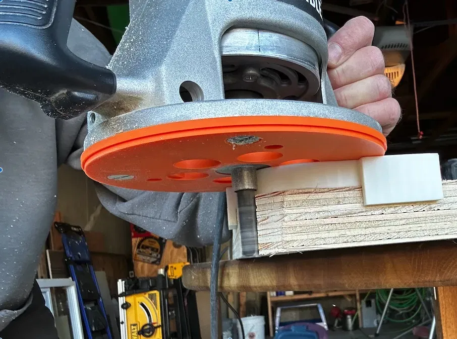 Khuôn bo góc 2" cho bàn bếp hoặc gỗ dày tới 1 ½". Dùng kèm vòng đệm router 1/16" và mũi phay soi cạnh để tạo góc bo tròn đẹp mắt.