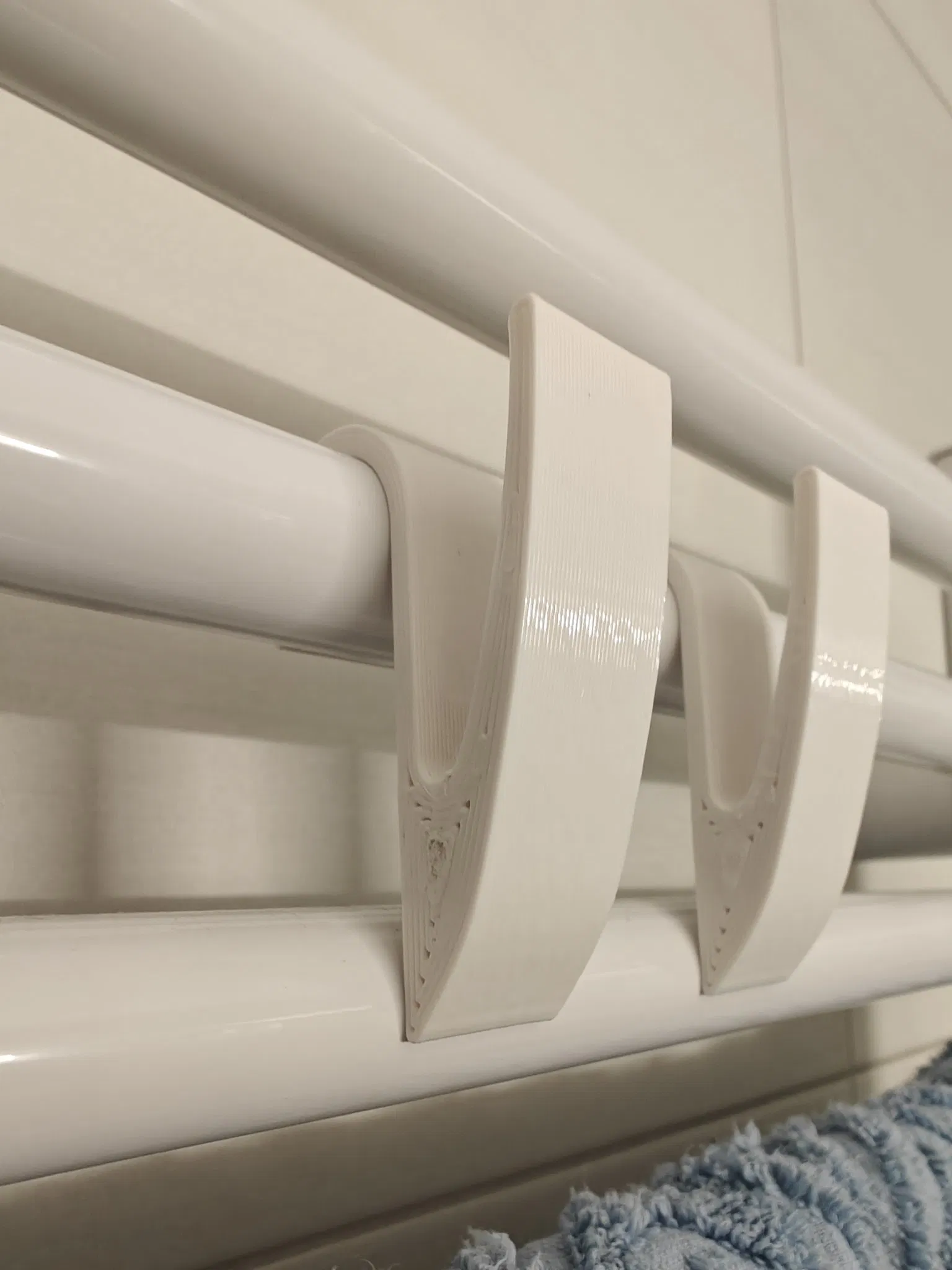 Móc treo khăn tắm đơn giản. Nên dùng vật liệu Petg hoặc tương tự để xài được lâu nha. Nó đủ cứng cáp cho khăn tắm nặng đó.