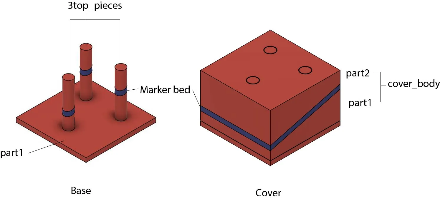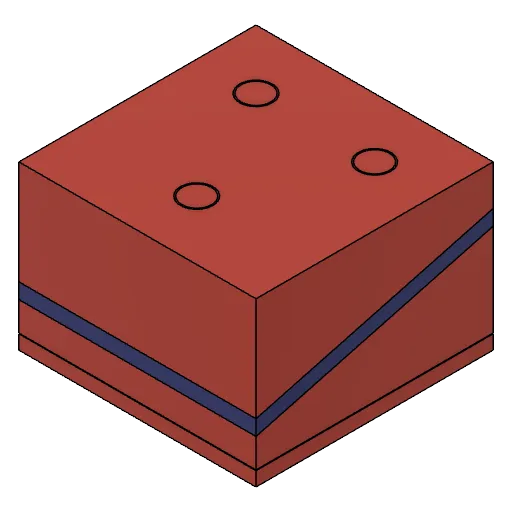 Mô hình này bao gồm hai phần riêng biệt: (1) khối đế thể hiện dữ liệu từ ba lỗ khoan và (2) khối phủ thể hiện một mặt cắt nghiêng nằm trên các lỗ khoan này. Giống như các mô hình trước, các khối có thể được tạo bằng máy in hai đầu phun hoặc bằng cách dán các bộ phận được in bằng máy in một đầu phun.