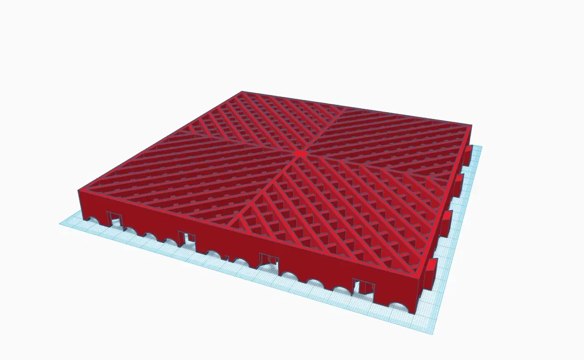 Gạch vuông 20cm x 20cm, cao 2cm. Có rãnh thoát nước. In bằng TPU cho cảm giác cao su, thay đổi độ cứng/mềm bằng cách điều chỉnh lớp độn và lớp tường. Chưa in thử nghiệm, có thể không cần hỗ trợ.