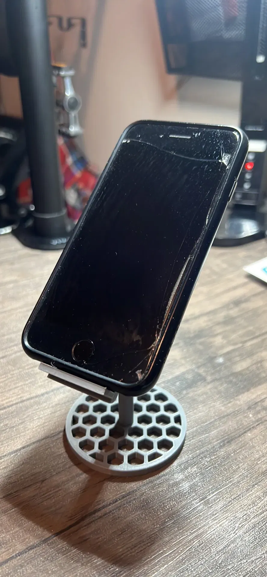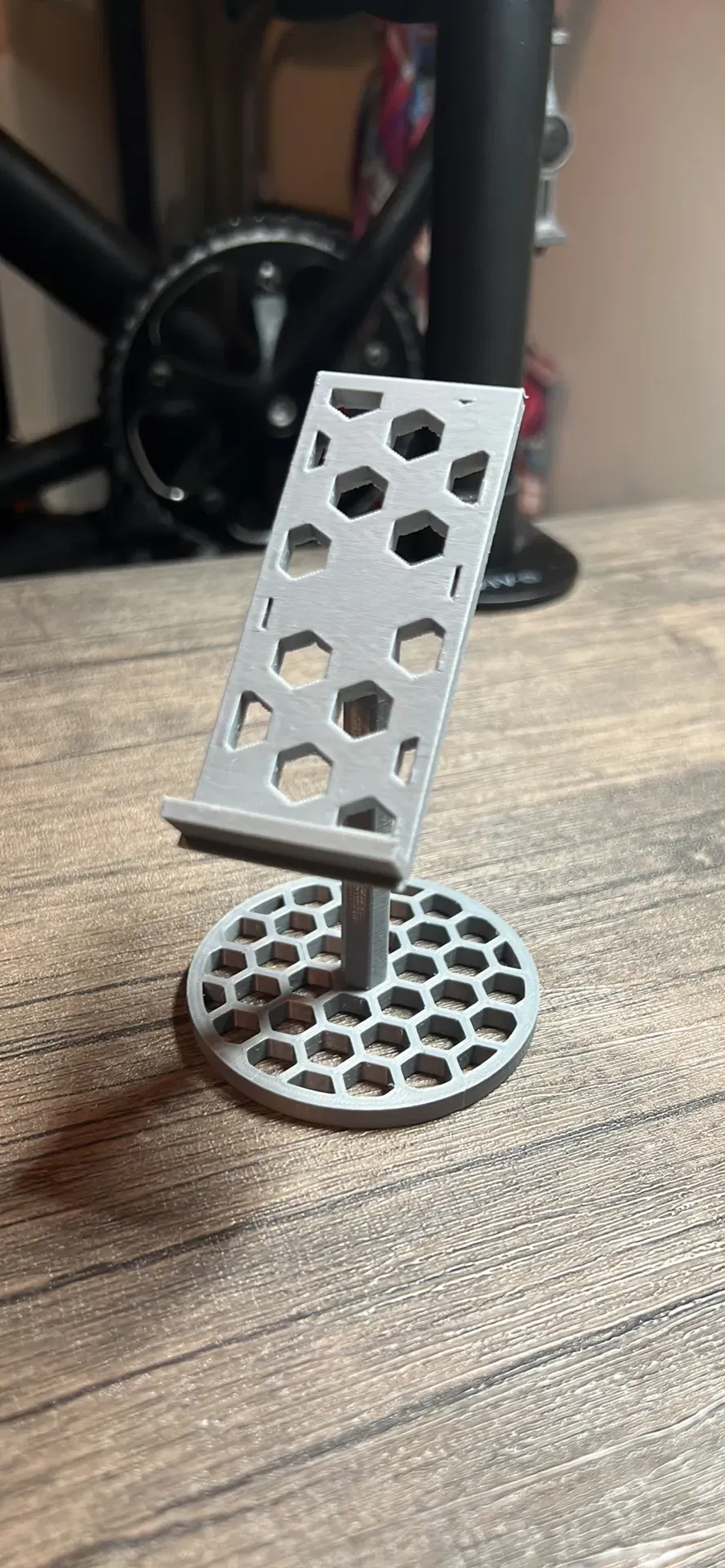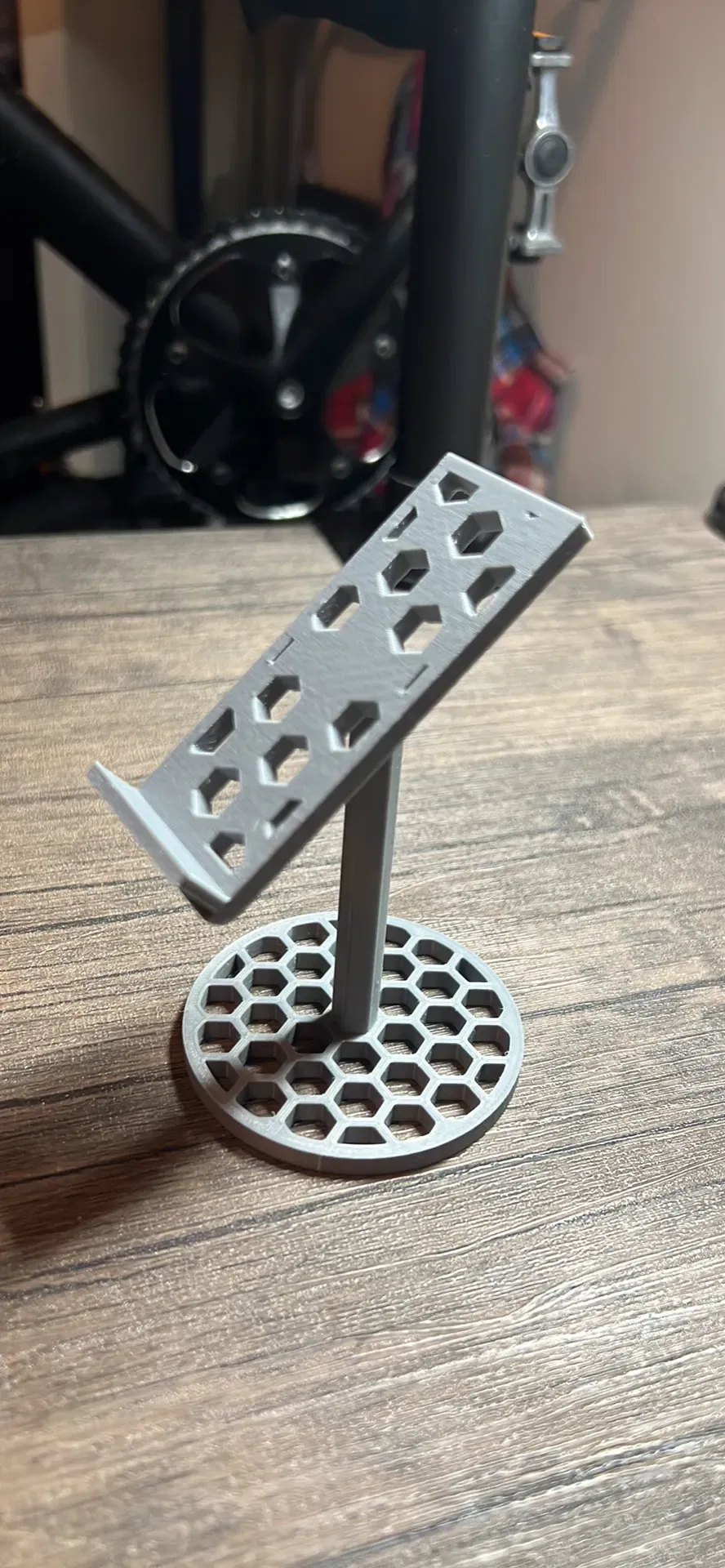 Chân đế đơn giản với họa tiết lục giác. Cho mình biết nếu có vấn đề về cân bằng nha, mình sẽ cố gắng điều chỉnh góc độ cho phù hợp. Thích hợp để trưng bày tay cầm chơi game hoặc điện thoại.