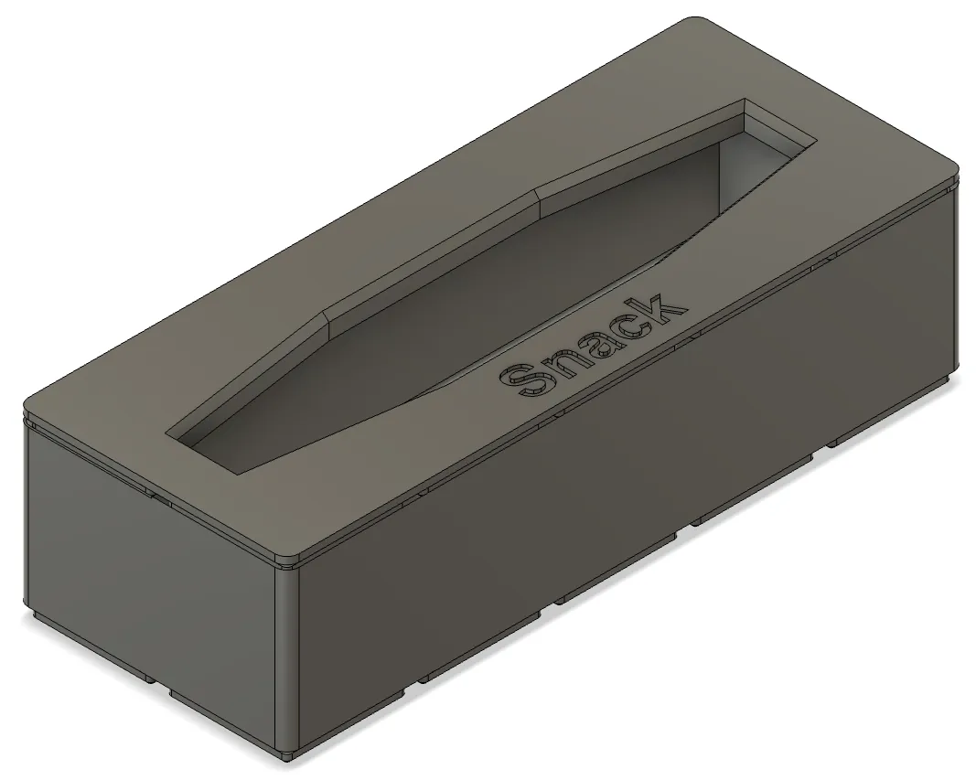 Hộp Gridfinity được thiết kế để đựng các loại túi Ziploc nhỏ, với kích thước 5x2x7. Sản phẩm đi kèm nhãn cho các loại túi Snack, Sandwich và Sandwich XL, và có thể giữ nắp bằng nam châm 6mm x 2mm. In nắp úp xuống để có bề mặt mịn màng hơn, và không cần support khi in.