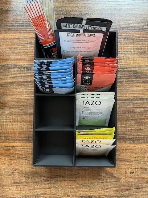 Hộp đựng trà túi lọc cho 7 loại trà khác nhau -- số lượng túi trà có thể chứa sẽ thay đổi.