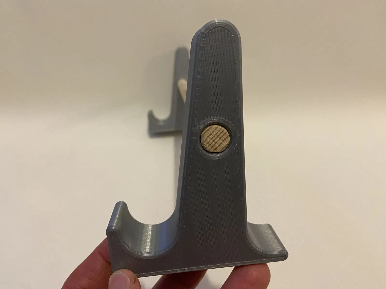 The original idea, and use, for this bracket/holder is to hold our large diploma frames. I made this bracket with a half inch hole so that you can glue a wood dowel through the part. This makes the bracket adjustable it to any width of frame.