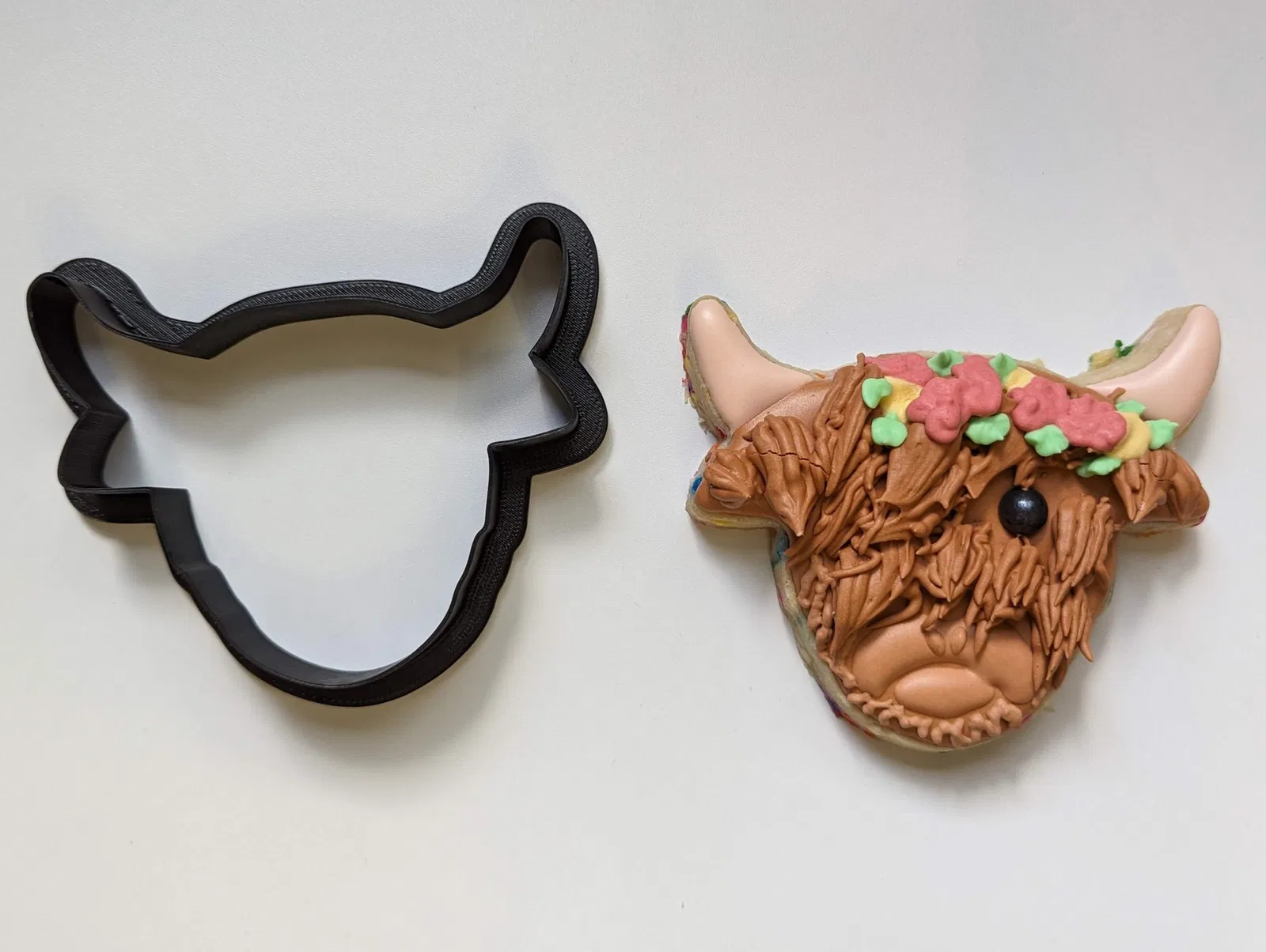 Một khuôn cắt bánh hình con bò cao nguyên. Hoạt động tốt khi in bằng ABS, với độ dày 0,2mm trên bột bánh quy đường dày 3/8". Nên dễ dàng để điều chỉnh kích thước lên hoặc xuống theo nhu cầu của bạn.