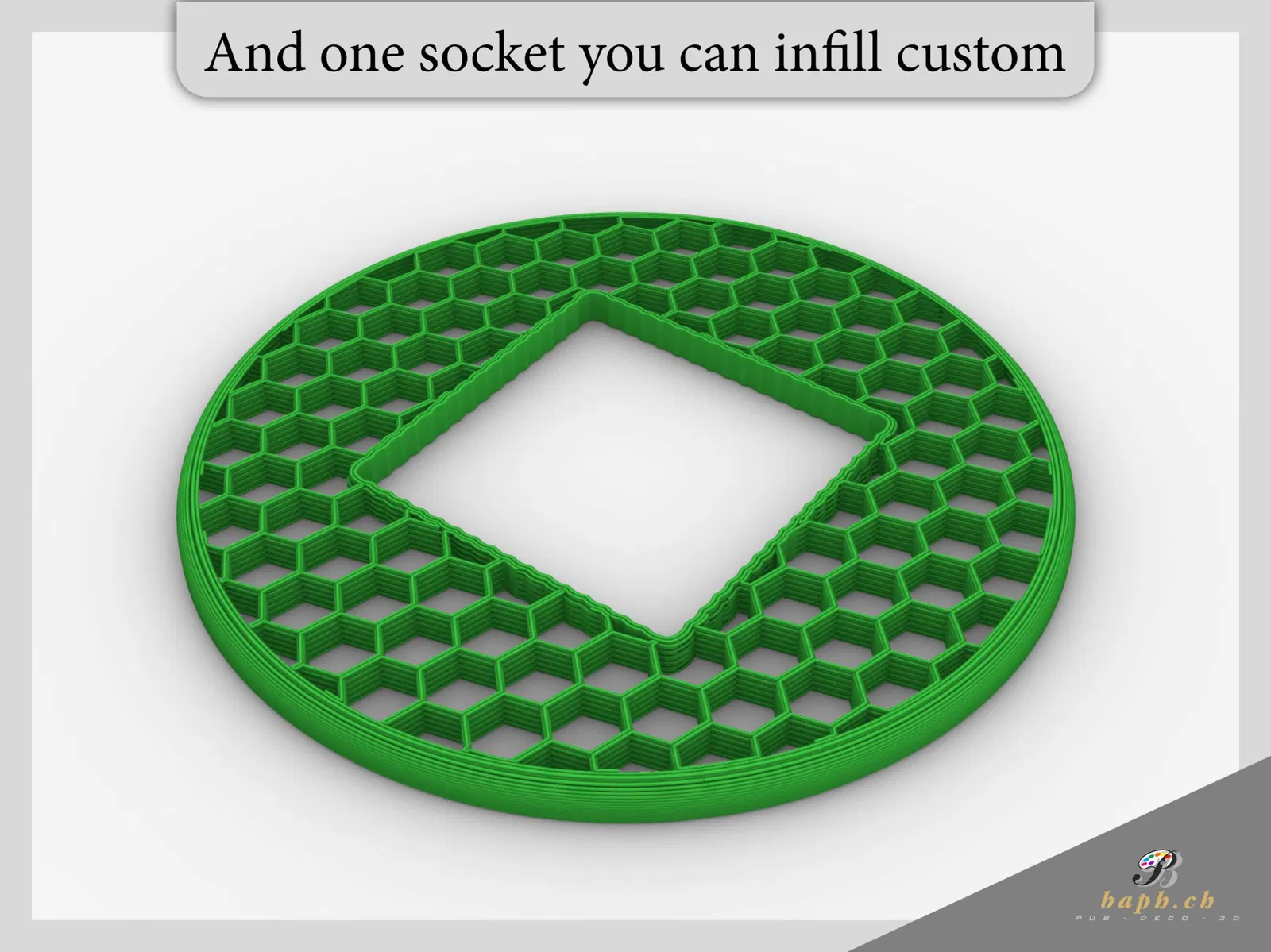 Cập nhật v3c thêm khung và kiểu Tetris. Đã thử nghiệm ở mức 200% cho anh em xem thử… nhưng mà không phải tôi test đâu nha, chất lượng là bao ngon đó. Xem ở phần bình luận, có thể anh em sẽ thích. Cập nhật v3b cho ổ cắm mới với độ lệch 30° và cho vui. Cập nhật v3 đã ra lò rồi nha! Tôi đã chỉnh sửa dung sai để xếp chồng tốt hơn và nó khá đặc biệt đó, nhưng tôi phải đặt về 0 cho mẫu này, tôi cũng không hiểu lắm nhưng mà thôi kệ, ổn là được.