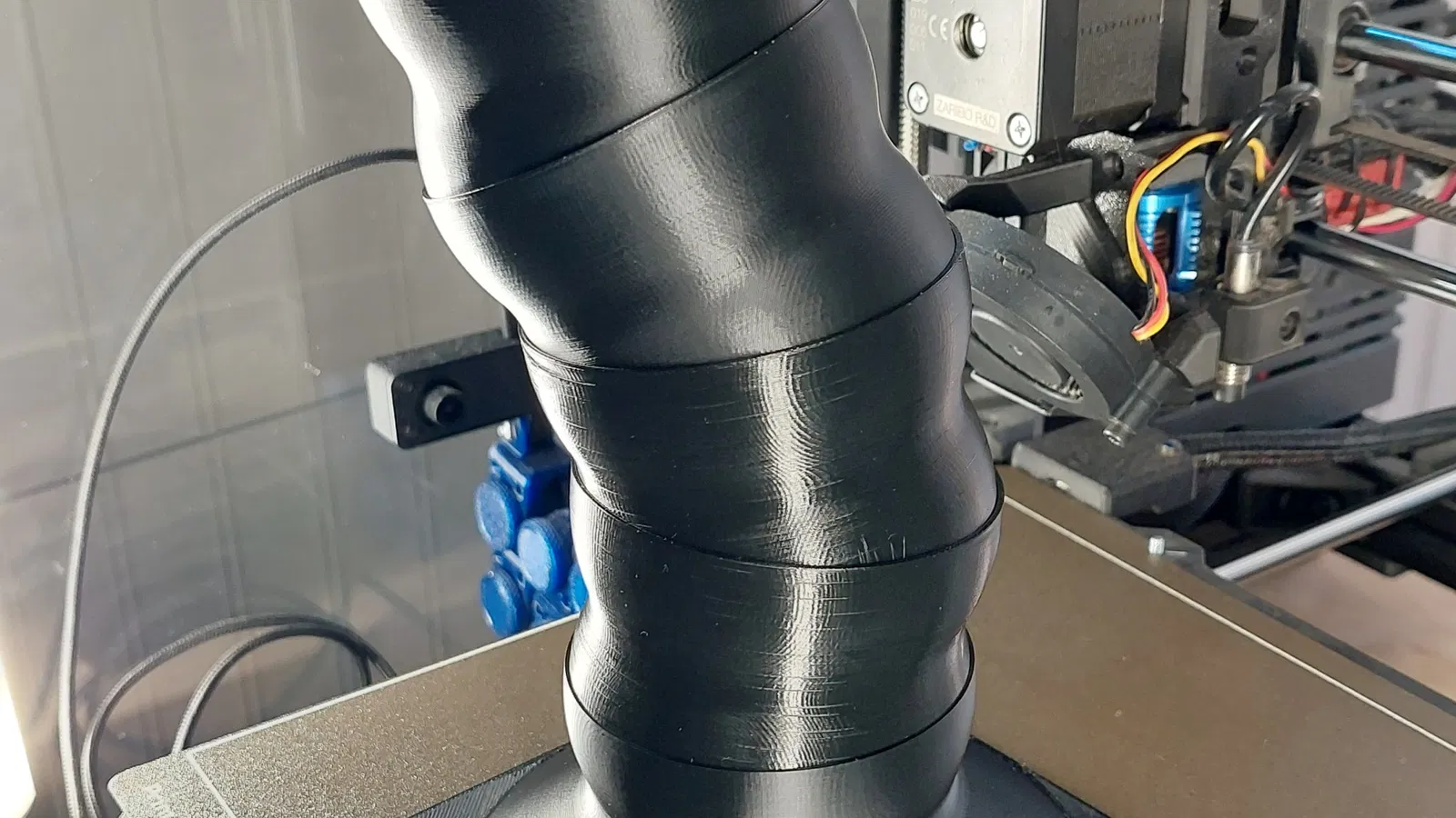Tui in bằng PETG, nhưng chắc vật liệu khác cũng xài được. Độ dẻo của PETG hợp với cái này.