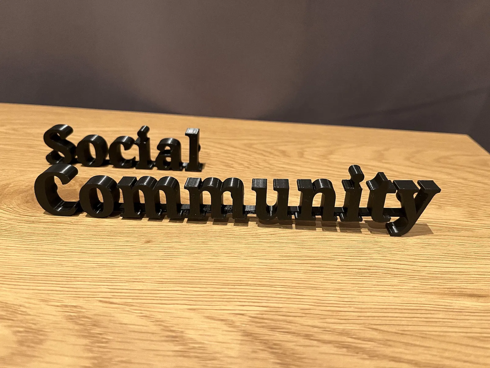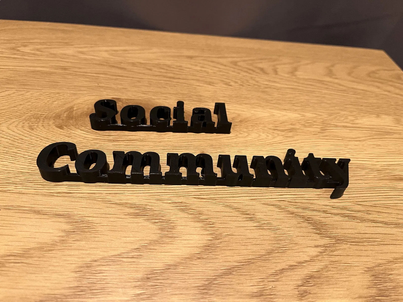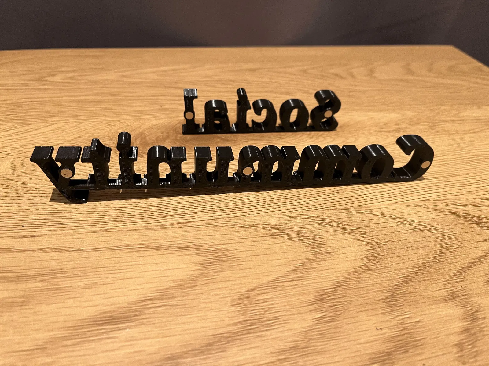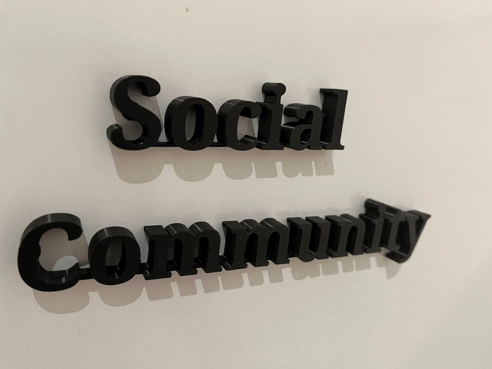 Biển Cộng Đồng Xã Hội có chỗ gắn nam châm 5x1. Chữ được nối liền và in úp để cho ra thành phẩm đẹp nhất. Đã có Gcode cho PLA và 10% infill, chữ cao 1cm, chữ 'social' dài 20cm vừa bàn Prusa mini. Treo được trên tủ lạnh hoặc bảng trắng.
