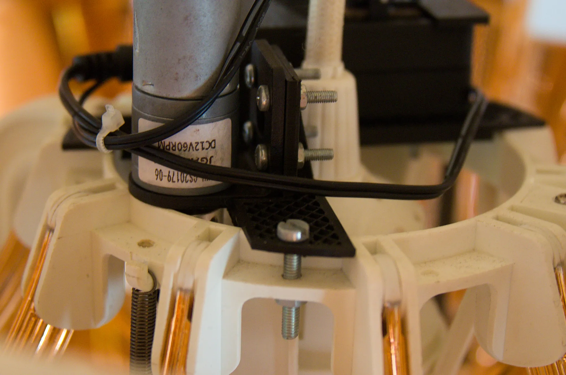 This version of the motorized PS2014 uses an Arduino UNO, a geared DC Motor and a lead screw. Everything is mounted on top of the lamp's corpus, which allows usage of a regular lightbulb.