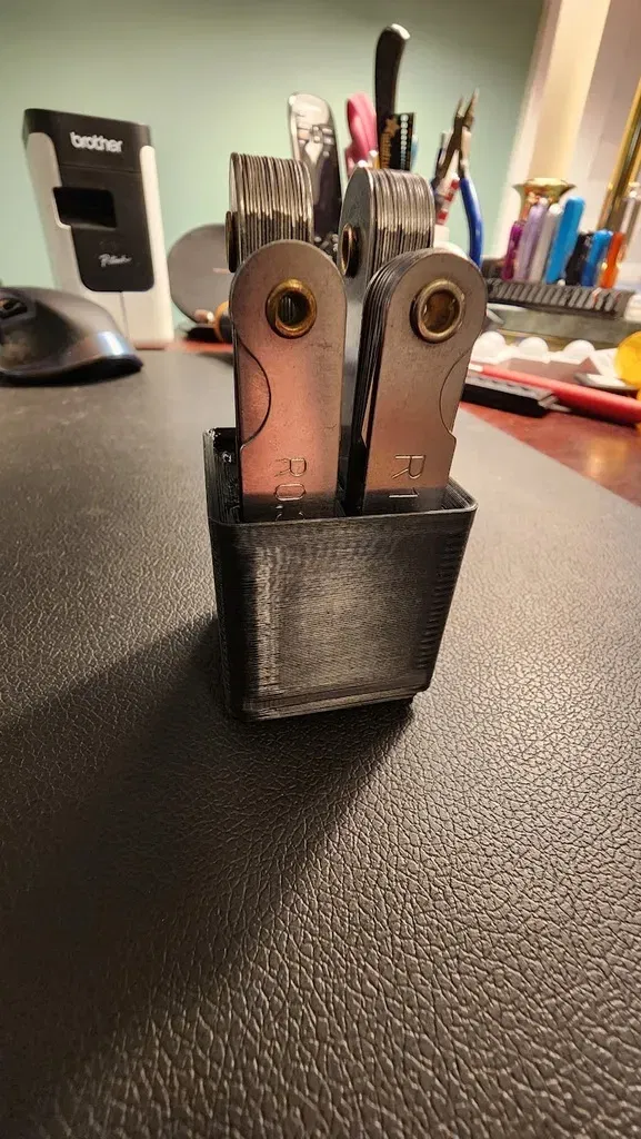 Khay Gridfinity này được thiết kế để đựng bộ dưỡng bán kính bằng thép hoặc các loại tương tự. Khay có lỗ nam châm tích hợp, không cần hỗ trợ khi in, giúp bạn cất giữ dụng cụ một cách gọn gàng.