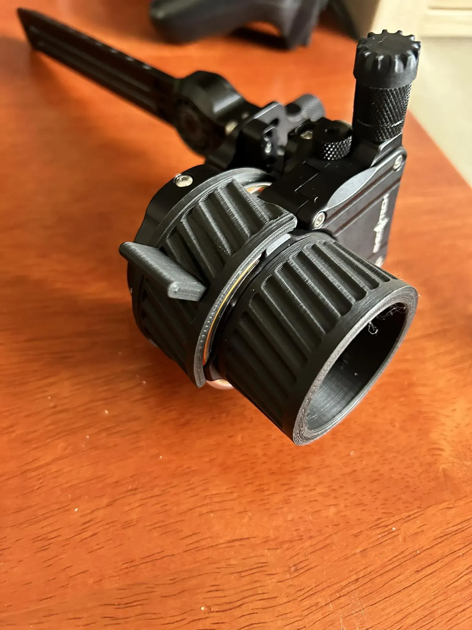 Tôi bị khó khăn khi chỉnh cái ốp sợi này, nên tôi tự làm một cái, có thêm cái tay cầm nhỏ xíu, giờ chỉnh độ sáng của các ghim ngắm dễ dàng hơn nhiều.