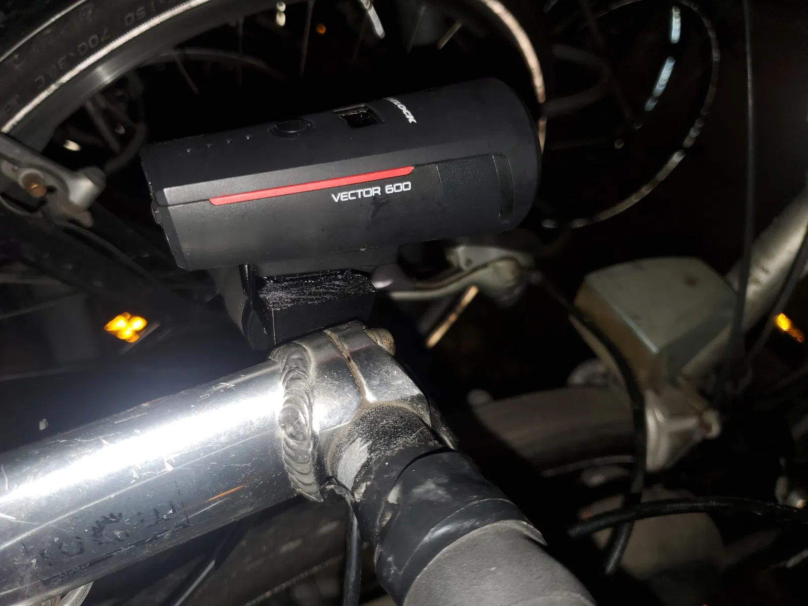 Đây là một cái mount đơn giản mà hữu ích để gắn đèn Trelock LSF-600 (Vector 600) của tôi lên ghi đông xe đạp của tôi. Tôi đã chỉnh sửa hai mẫu có sẵn, cho phép mount được siết chặt vào ghi đông bằng dây rút.