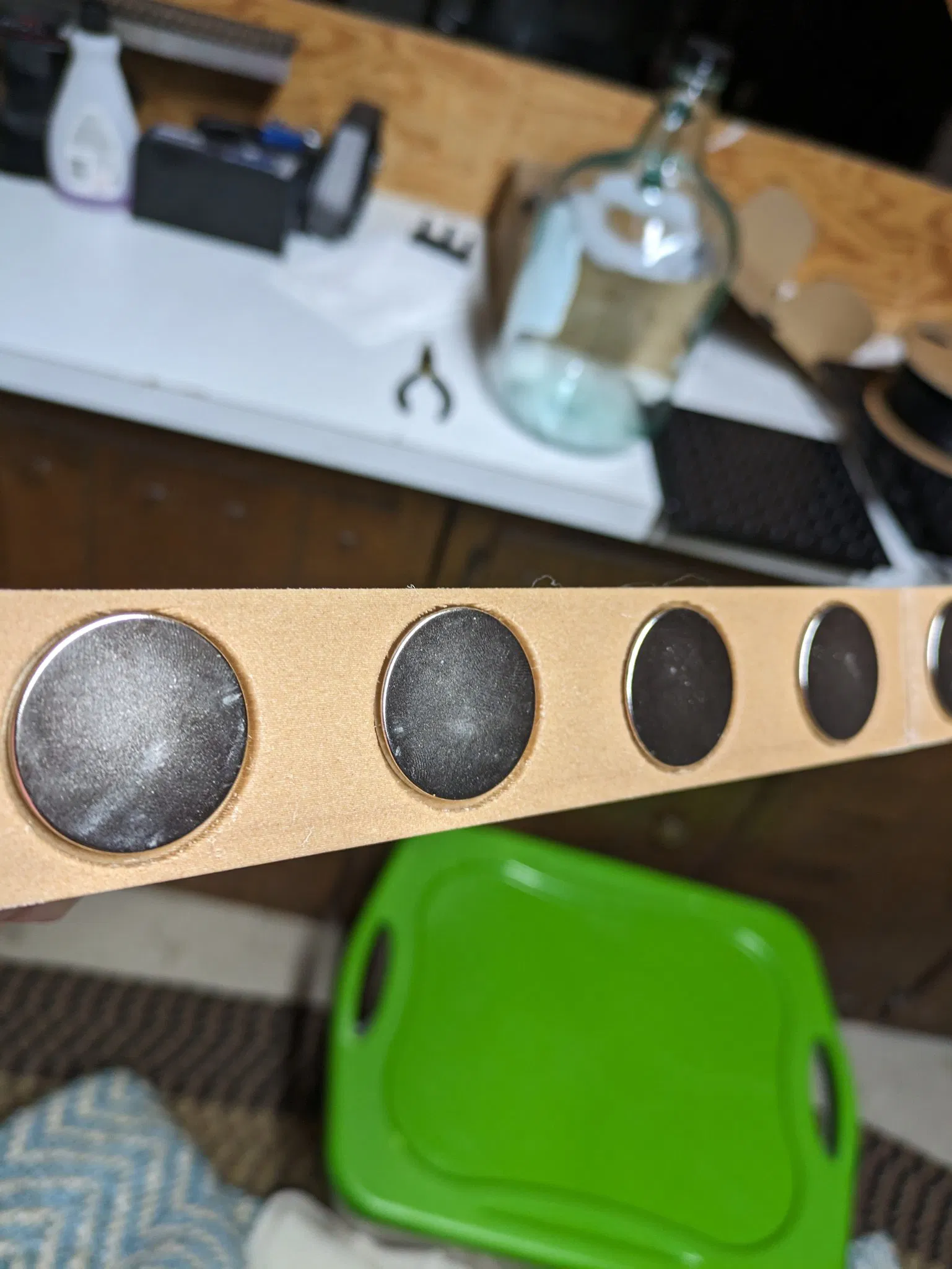 Cái khay nhỏ giọt bằng thép không gỉ này có kích thước 19 và 5/16 "x 4 và 1/16". Tui xài loại hiệu "Yaebrew" mua trên Amazon. Mấy cục nam châm là loại nam châm đĩa neodymium hiệu "Lovimag" trên Amazon, người ta quảng cáo là 32x3mm nhưng tui đo được có 29.6x2.6mm à. Lỗ nam châm có đường kính 1.25 inch hay 31.75mm.