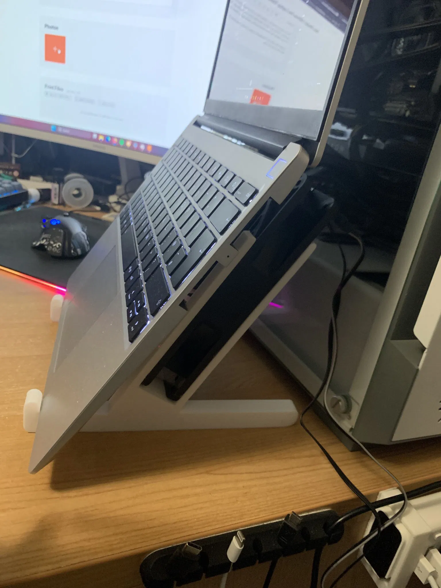Đây là giá đỡ máy tính xách tay cho một máy tính xách tay có chiều rộng lên tới khoảng 2cm và có thể giữ một quạt 180x180x32mm.
